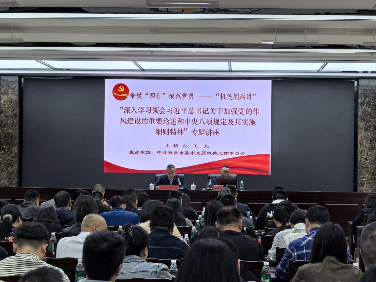 近日,自貢市委市直機(jī)關(guān)工委舉辦爭(zhēng)做“四有”模范黨員“機(jī)關(guān)周周講”專題講座,聚焦習(xí)近平總書(shū)記關(guān)于黨的作風(fēng)建設(shè)重要論述及中央八項(xiàng)規(guī)定精神,邀請(qǐng)省委黨校專家授課,市直機(jī)關(guān)180余名黨員干部參加學(xué)習(xí)。