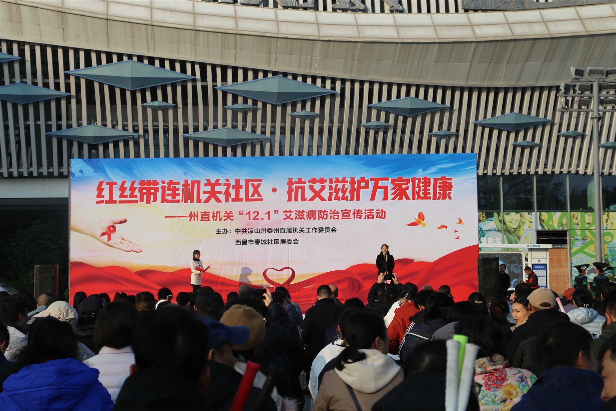 為深入貫徹落實(shí)州委關(guān)于艾滋病防治工作的有關(guān)精神,推動(dòng)艾滋病防治宣傳走進(jìn)機(jī)關(guān)、深入社區(qū),12月1日至3日,涼山州委州直機(jī)關(guān)工委在州民族體育場(chǎng)組織開展了“紅絲帶連機(jī)關(guān)社區(qū)·抗艾滋護(hù)萬(wàn)家健康”艾滋病防治宣傳活動(dòng)。州直機(jī)關(guān)干部職工代表、春城社區(qū)群眾共500余人參加活動(dòng)。州委州直機(jī)關(guān)工委副書記王佳致辭,州委州直機(jī)關(guān)工委班子成員,西昌市東城街道黨工委、春城社區(qū)負(fù)責(zé)人參加。