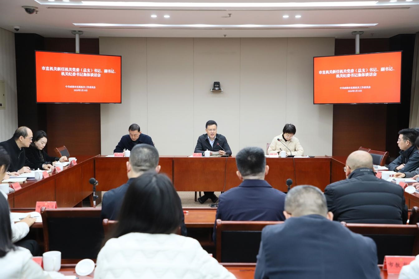 3月18日,成都市直機(jī)關(guān)工委舉行2026年度新任機(jī)關(guān)黨委(總支)書記、副書記、機(jī)關(guān)紀(jì)委書記集體談話。市直機(jī)關(guān)工委常務(wù)副書記鐘科出席并講話。市直各部門(單位)20余名新任機(jī)關(guān)黨委書記、副書記以及機(jī)關(guān)紀(jì)委書記參加談話。