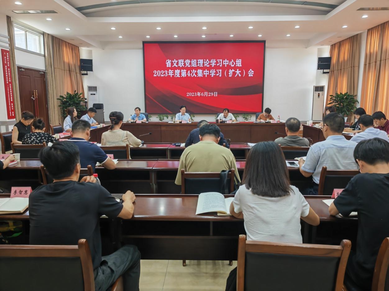 6月29日,省文聯(lián)黨組理論學(xué)習(xí)中心組(擴大)召開2023年第4次集中學(xué)習(xí)會,深入學(xué)習(xí)領(lǐng)會習(xí)近平總書記關(guān)于以學(xué)增智的重要要求、關(guān)于主題教育系列重要講話、關(guān)于樹立和踐行正確政績觀重要論述精神,深入學(xué)習(xí)貫徹省委十二屆三次全會精神,學(xué)習(xí)浙江“浦江經(jīng)驗”“千萬工程”經(jīng)驗,開展“不斷提升政治能力、思維能力、實踐能力”專題研討。省文聯(lián)黨組書記、常務(wù)副主席鄒瑾主持學(xué)習(xí)會。