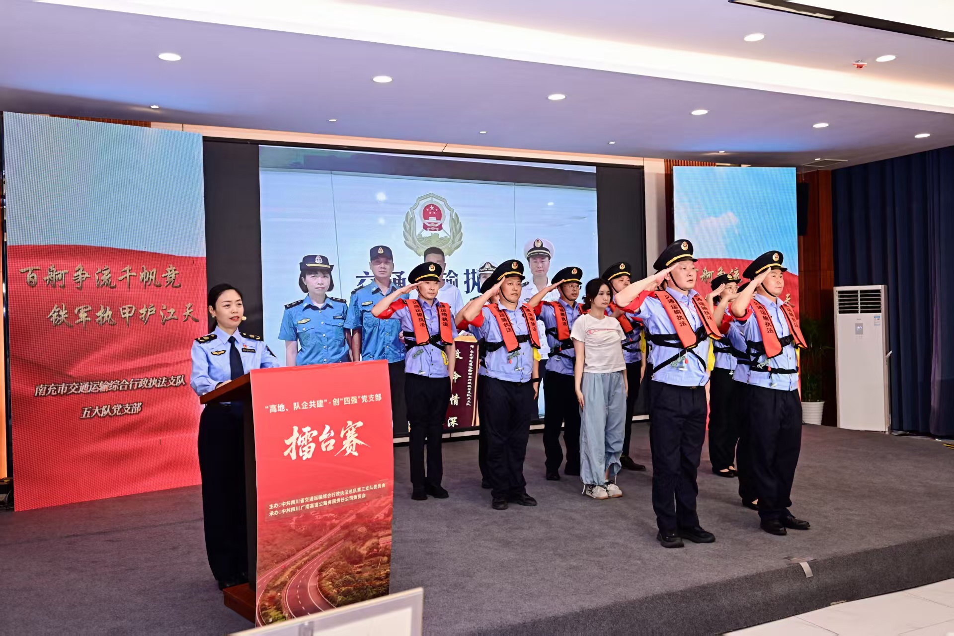 為慶祝中國(guó)共產(chǎn)黨成立104周年,深入學(xué)習(xí)貫徹習(xí)近平總書(shū)記重要指示批示精神,落實(shí)中央、省委、廳黨組和總隊(duì)(局)黨委關(guān)于“四強(qiáng)”黨支部建設(shè)的部署要求,7 月 17 日,省交通執(zhí)法總隊(duì)第三支隊(duì)舉辦“高地、隊(duì)企共建”創(chuàng)“四強(qiáng)”黨支部擂臺(tái)賽。省交通執(zhí)法總隊(duì)第三支隊(duì)及南充、遂寧執(zhí)法支隊(duì),廣南公司、成綿蒼巴公司的7個(gè)黨支部參賽,各單位黨員代表100余人參加。
