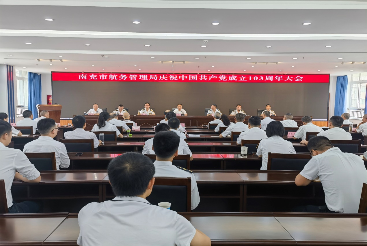 近日,南充市航務(wù)管理局組織召開慶祝中國共產(chǎn)黨成立103周年大會暨黨紀(jì)學(xué)習(xí)教育警示教育會。局黨委書記、局長張曉波主持會議并講話。