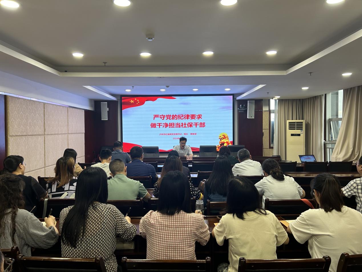 為推動黨紀(jì)學(xué)習(xí)教育走深走實,近日,瀘州市社保局黨支部書記、局長陳智堅同志為全體黨員上了一堂題為“嚴(yán)守黨的紀(jì)律要求,做干凈擔(dān)當(dāng)社保干部”的紀(jì)律黨課。