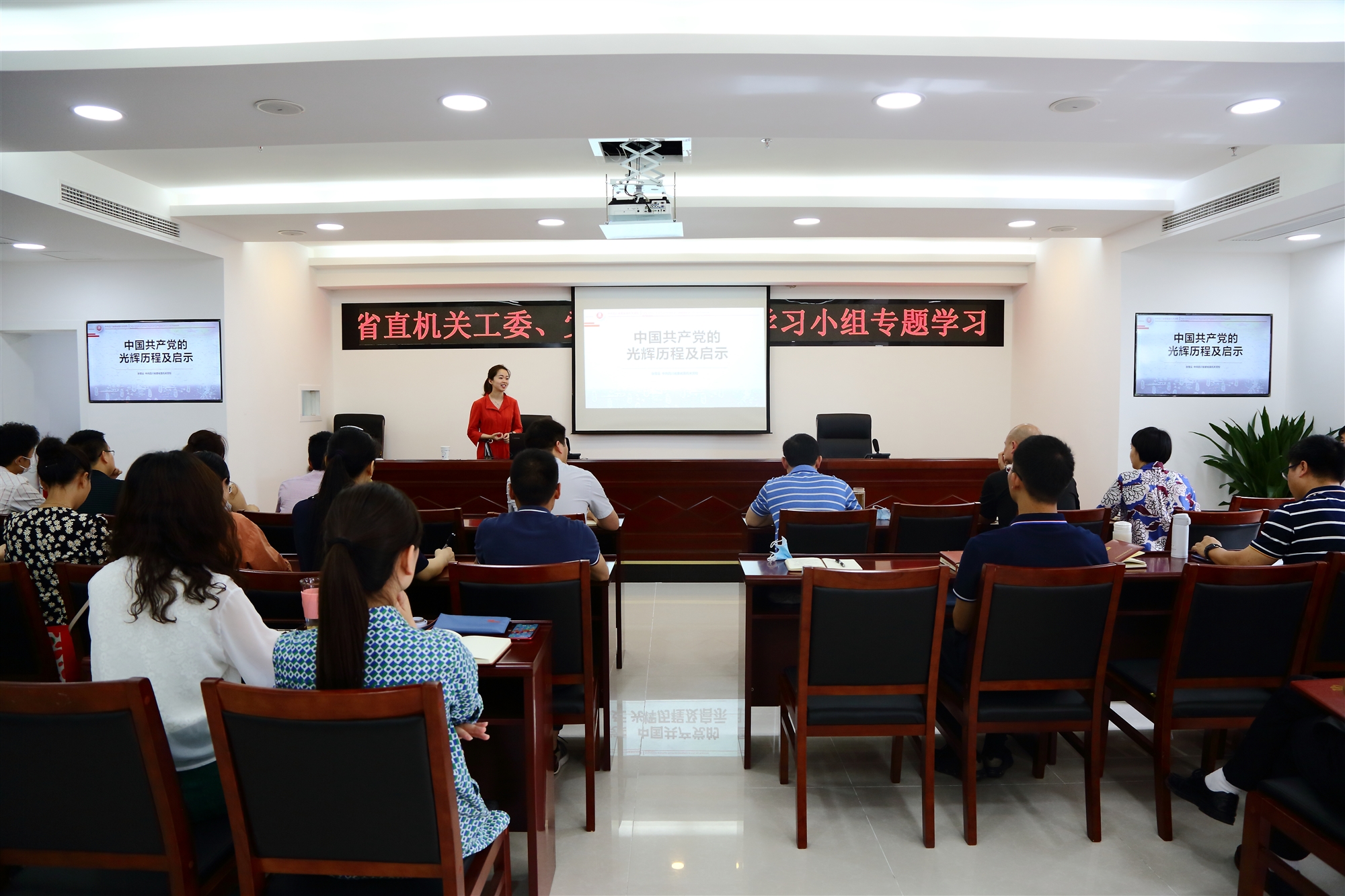 為做實(shí)做細(xì)機(jī)關(guān)青年理論學(xué)習(xí)工作,根據(jù)省直機(jī)關(guān)工委青年理論學(xué)習(xí)小組計(jì)劃安排,6月9日上午,省直機(jī)關(guān)工委、省委省直機(jī)關(guān)黨校青年理論學(xué)習(xí)小組開展了聯(lián)合專題學(xué)習(xí)。省委省直機(jī)關(guān)黨校哲學(xué)社會(huì)學(xué)教研部張瑩云老師以《中國共產(chǎn)黨的光輝歷程及啟示》為題,深入淺出的為工委黨員突擊隊(duì)、青年理論學(xué)習(xí)小組、省直機(jī)關(guān)黨校青年理論學(xué)習(xí)小組成員作了一堂精彩講座。省直機(jī)關(guān)工委辦公室主任、突擊隊(duì)隊(duì)長、青年理論學(xué)習(xí)小組組長何成華最后作總結(jié)講話。