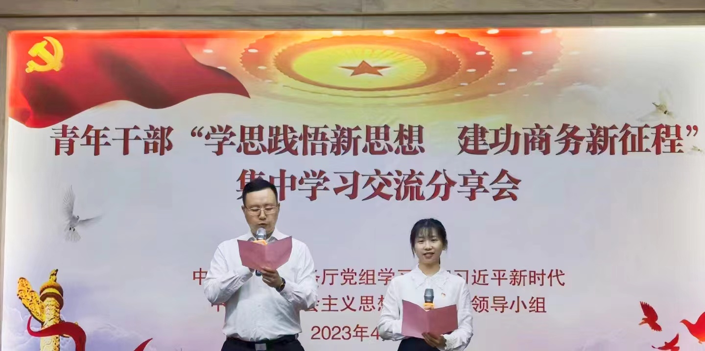 4月21日,商務(wù)廳舉辦青年干部“學(xué)思踐悟新思想 建功商務(wù)新征程”集中學(xué)習(xí)交流分享會,廣大青年干部圍繞學(xué)習(xí)貫徹習(xí)近平新時代中國特色社會主義思想主題教育集中學(xué)習(xí)開展學(xué)習(xí)交流。廳黨組書記、廳長徐一心親臨指導(dǎo),全體廳領(lǐng)導(dǎo)、二級巡視員、廳機關(guān)各處室主要負(fù)責(zé)同志和機關(guān)40歲以下青年干部參加會議。