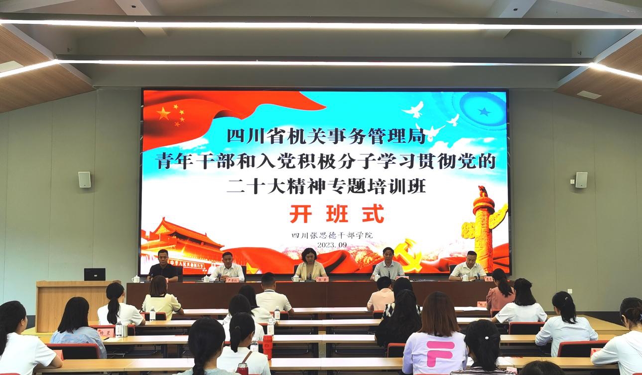 為深入學(xué)習(xí)貫徹習(xí)近平新時(shí)代中國特色社會(huì)主義思想和黨的二十大精神,落實(shí)中央、省委關(guān)于黨員干部教育管理和黨員發(fā)展工作的相關(guān)要求,進(jìn)一步提升局系統(tǒng)青年干部能力素質(zhì),推動(dòng)四川機(jī)關(guān)運(yùn)行保障現(xiàn)代化建設(shè),9月18日至21日,省機(jī)關(guān)事務(wù)管理局在四川張思德干部學(xué)院舉辦2023年青年干部和入黨積極分子學(xué)習(xí)貫徹黨的二十大精神專題培訓(xùn)班。局黨組成員、機(jī)關(guān)黨委書記張肅出席開班式并講話。來自局機(jī)關(guān)、局屬單位和市(州)駐蓉辦事處的40余名團(tuán)支部書記、青年骨干和入黨積極分子參加培訓(xùn)。
