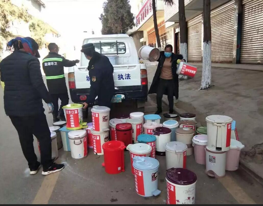 全市共在公共場所已共計(jì)設(shè)置專用定點(diǎn)垃圾桶582處,發(fā)放口罩18000余個(gè)。