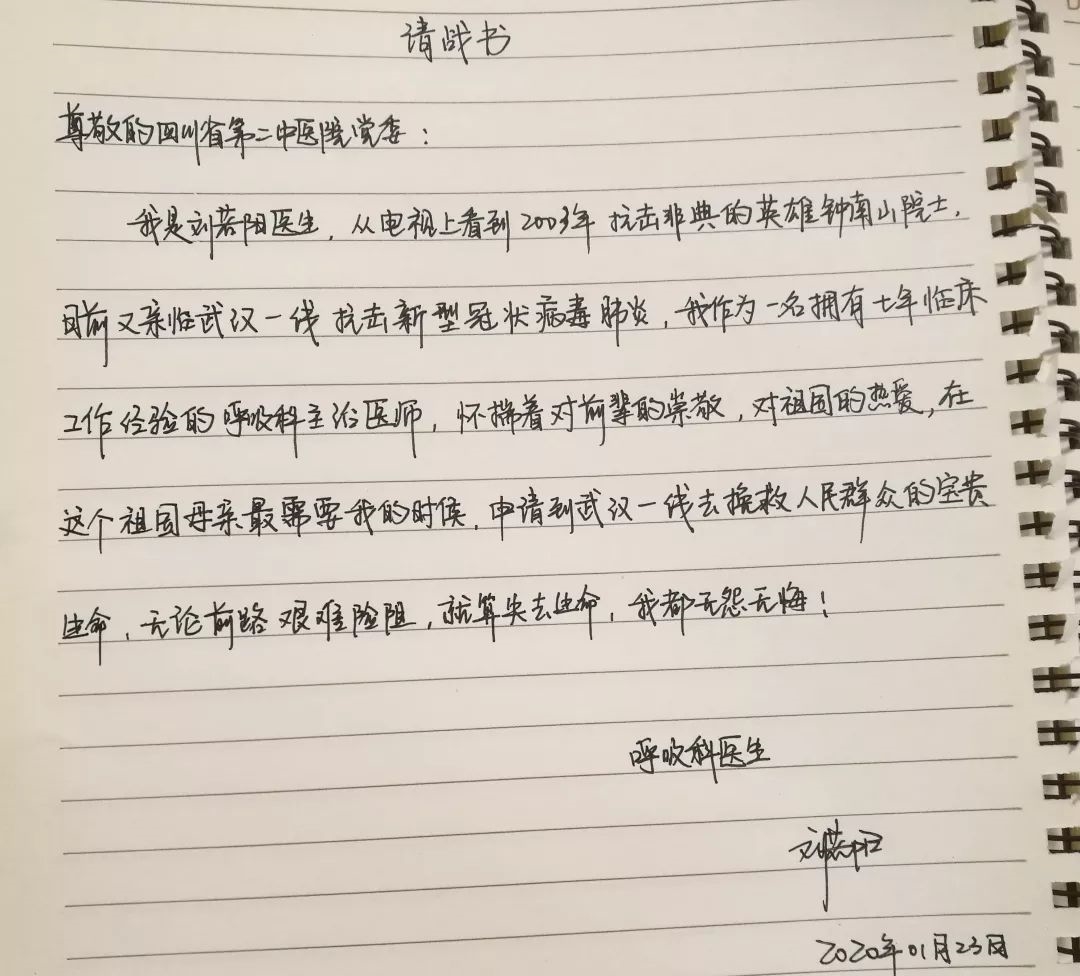自從武漢新冠肺炎疫情爆發(fā)以來,作為呼吸病專科醫(yī)生的我,時刻關(guān)注疫情變化,時刻準(zhǔn)備著貢獻(xiàn)自己的一份力量。2020年1月23日下午,四川省衛(wèi)健委發(fā)出了支援武漢號令。一聽到消息,我即刻請戰(zhàn),到人們最需要我的地方去。