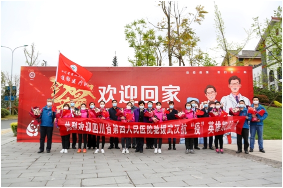 四月繁花似錦,英雄凱旋回家。近日,省第四人民醫(yī)院16名援鄂醫(yī)療隊(duì)員結(jié)束14天隔離休整,省政府副秘書(shū)長(zhǎng),省機(jī)關(guān)事務(wù)管理局黨組書(shū)記、局長(zhǎng)郭春英帶隊(duì)前往簡(jiǎn)陽(yáng)三岔湖駐地迎接援鄂醫(yī)療隊(duì)員回家,局黨組成員、機(jī)關(guān)黨委書(shū)記舒渠豐陪同。