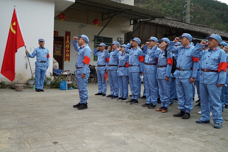 徒步告一段落,全體黨員來到德昌縣紅軍廣場,在省交通運輸廳公路局黨委委員、副局長胡厚池同志的帶領下重溫入黨誓詞,回顧革命初心、激發(fā)使命擔當,接受深刻的黨性教育。莊嚴的字句從每一個人的口中說出,與這里的歷史相互輝映,從而變得立體生動,深深鐫刻在每一個人的腦海里。