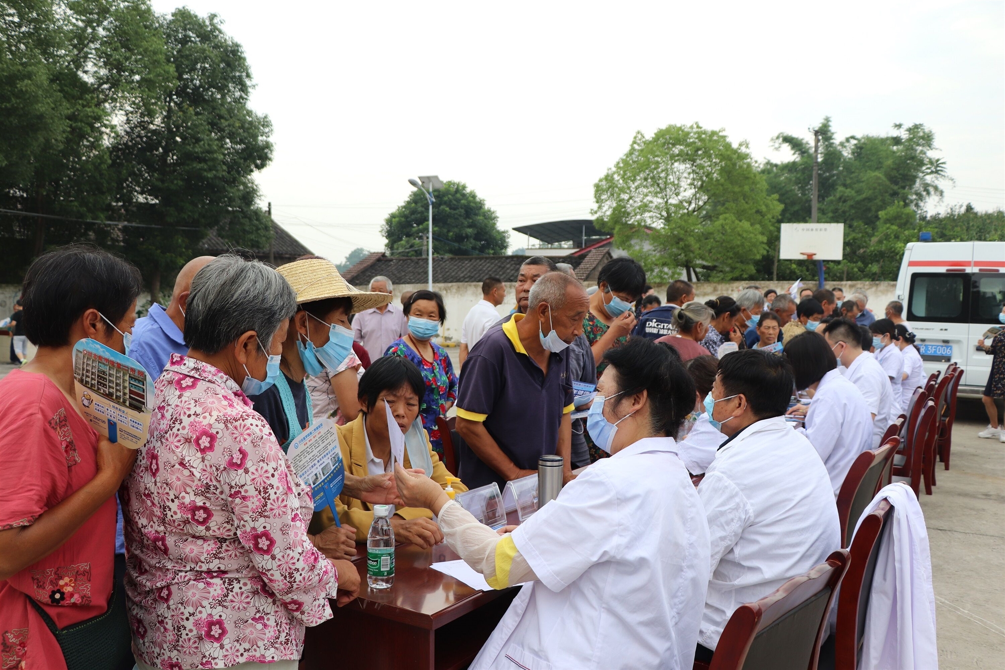 內(nèi)科、外科、骨科、疼痛康復(fù)科、眼科等科室16名醫(yī)護(hù)骨干為村民開(kāi)展門診慢性病診斷、血糖血壓檢測(cè)、白內(nèi)障及視力篩查、就醫(yī)政策宣傳、醫(yī)學(xué)常識(shí)和健康保健知識(shí)宣講等服務(wù),倡導(dǎo)科學(xué)飲食、健康生活方式,并現(xiàn)場(chǎng)為村民們免費(fèi)發(fā)放了藥品、口罩等。