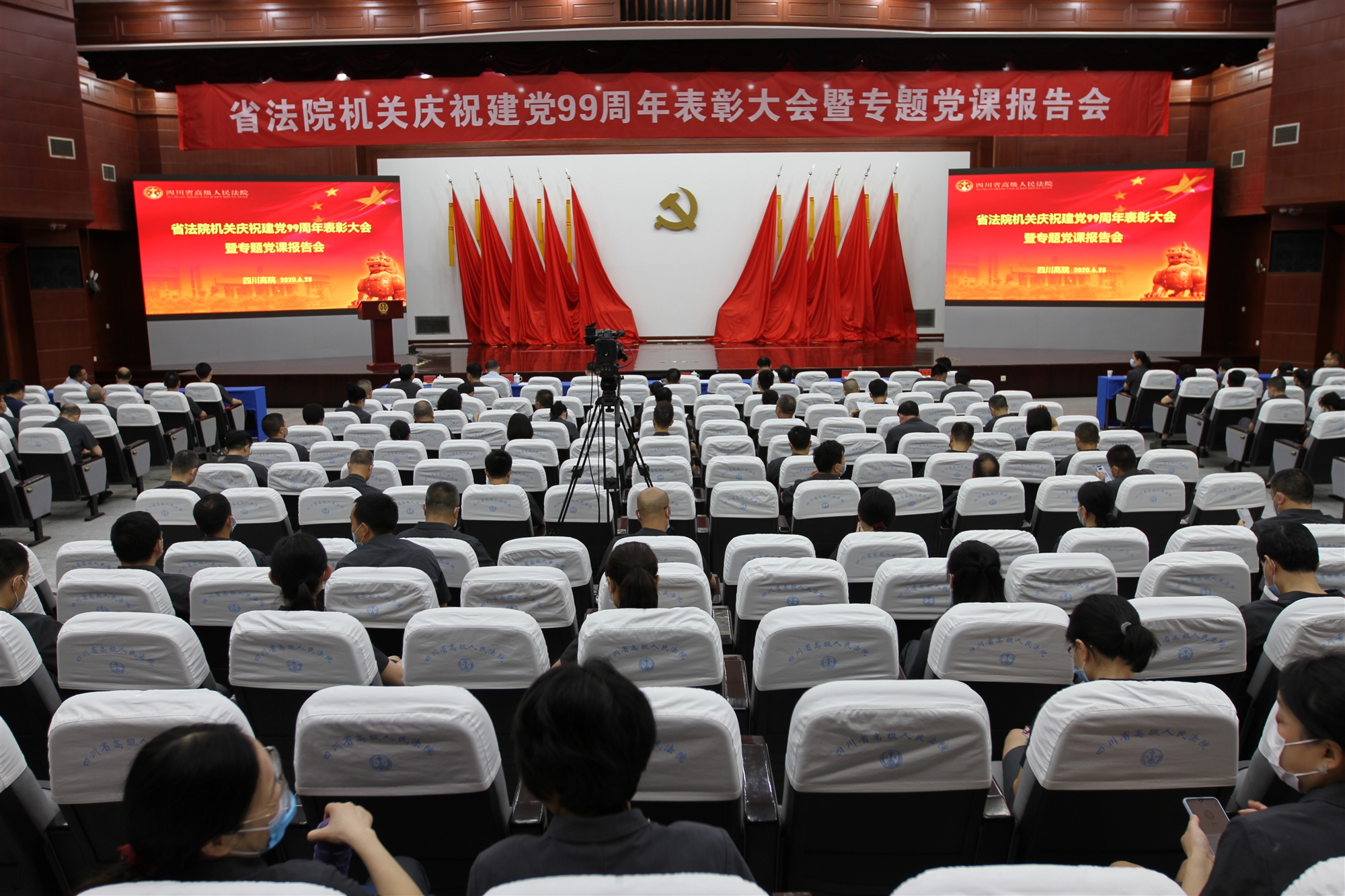 為慶祝中國共產(chǎn)黨成立99周年,鞏固深化“不忘初心、牢記使命”主題教育成果,6月28日上午,省法院隆重舉行慶祝建黨99周年表彰大會。省法院黨組書記、院長王樹江及在家領(lǐng)導(dǎo)班子成員、廳級干部和黨員干警代表200余人參加大會。會議由院黨組副書記、常務(wù)副院長熊焱主持。會上,王樹江院長為參會黨員干警上了一次生動的專題黨課。