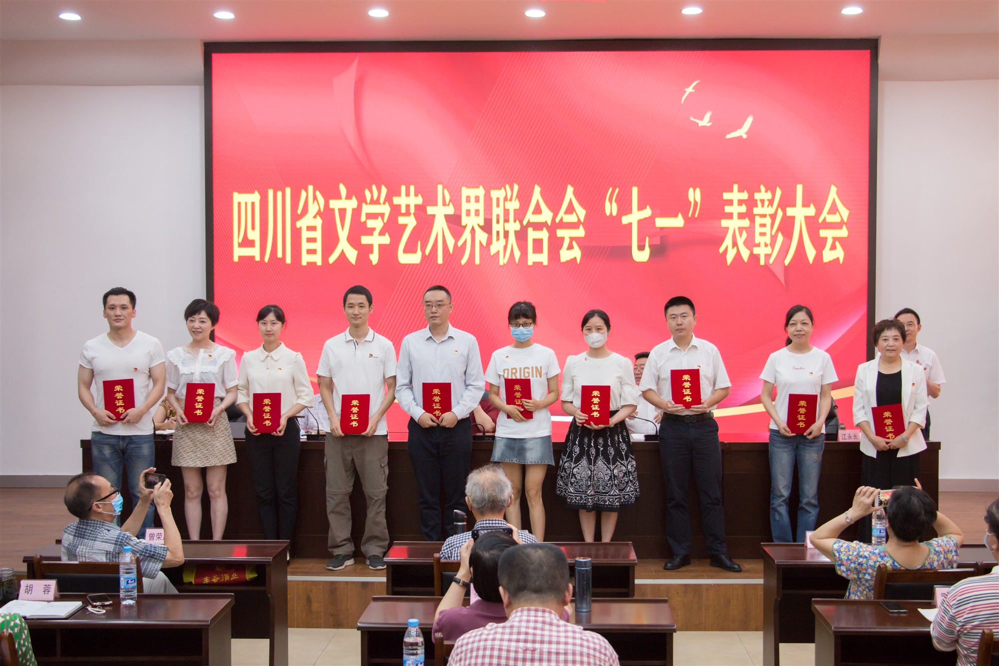 會(huì)上,李兵同志宣讀了《中共四川省文聯(lián)機(jī)關(guān)委員會(huì)關(guān)于表彰優(yōu)秀共產(chǎn)黨員、優(yōu)秀黨務(wù)工作者和先進(jìn)基層黨組織的決定》,劉建剛同志宣讀了《中共四川省文聯(lián)機(jī)關(guān)委員會(huì)關(guān)于表?yè)P(yáng)青年學(xué)習(xí)標(biāo)兵的決定》,黨組領(lǐng)導(dǎo)向受到表彰的集體和個(gè)人以及受到表?yè)P(yáng)的同志頒發(fā)證書(shū),優(yōu)秀共產(chǎn)黨員、優(yōu)秀黨務(wù)工作者和青年學(xué)習(xí)標(biāo)兵代表在會(huì)上做了發(fā)言。