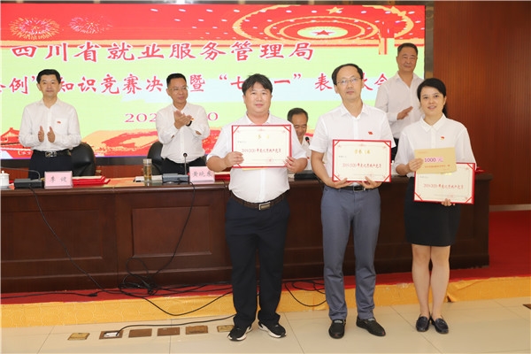在知識競賽決賽現(xiàn)場,從初賽中脫穎而出的6支參賽隊(duì)伍,準(zhǔn)備充分、快速反應(yīng)、沉著應(yīng)答,競相展現(xiàn)豐富的黨史黨規(guī)知識。經(jīng)過激烈角逐,局辦公室黨支部榮獲一等獎,省就業(yè)訓(xùn)練中心黨支部和省雙創(chuàng)中心黨支部榮獲二等獎;局就業(yè)指導(dǎo)處黨支部、局審計處黨支部和西北街社區(qū)第二黨支部榮獲三等獎。大會對評選出來的2019—2020年度優(yōu)秀共產(chǎn)黨員、優(yōu)秀黨務(wù)工作者、先進(jìn)黨組織進(jìn)行表彰,頒發(fā)了獎狀和獎金。