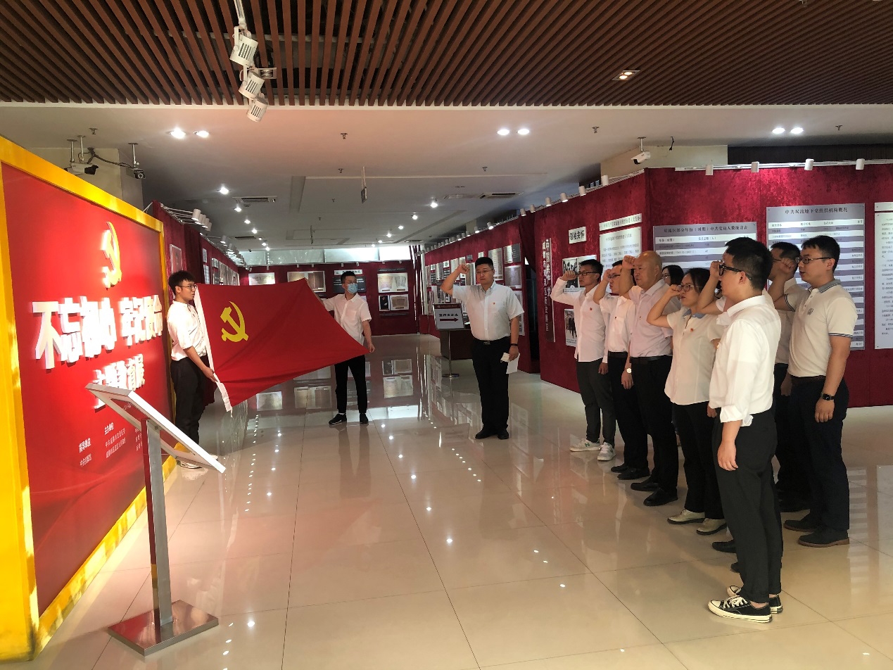 活動中,全體同志參觀雙流區(qū)檔案館,了解當(dāng)?shù)攸h組織建立的艱辛歷史,學(xué)習(xí)田家英同志先進(jìn)事跡。全體黨員同志在黨旗下重溫入黨誓詞。