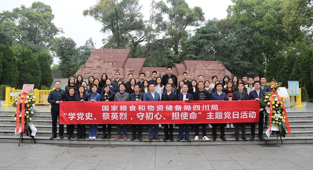 為深入學(xué)習(xí)貫徹習(xí)近平總書記關(guān)于崇尚英雄、緬懷先烈的重要指示精神,根據(jù)國家糧食和物資儲備局四川局黨史學(xué)習(xí)教育領(lǐng)導(dǎo)小組安排部署,4月13日上午,局直屬機(jī)關(guān)黨委組織機(jī)關(guān)、服務(wù)中心、集團(tuán)公司黨員,到成都十二橋烈士陵園開展“學(xué)黨史、祭英烈,守初心、擔(dān)使命”主題黨日活動,緬懷革命先烈,汲取紅色力量,筑牢信仰基石,深入有序推進(jìn)黨史學(xué)習(xí)教育走深走實(shí)。局分黨組副書記、副局長熊興出席并參加活動。