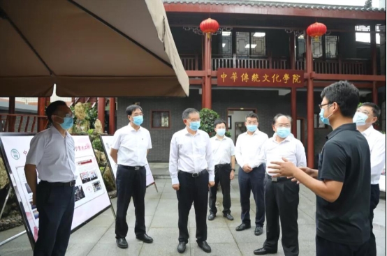 在四川師范大學(xué),李建勤深入學(xué)校疫情防控各個關(guān)鍵點位,調(diào)研學(xué)生返校防疫方案制定、措施落實、物資保障等情況;來到中華傳統(tǒng)文化學(xué)院,聽取學(xué)院建設(shè)情況匯報,觀看學(xué)院發(fā)展成果。李建勤指出,四川正大力實施中華優(yōu)秀傳統(tǒng)文化傳承發(fā)展工程,高等院校作為文化傳承傳播的重要載體,要充分發(fā)揮中華優(yōu)秀傳統(tǒng)文化在立德樹人中的作用,切實增強傳承發(fā)展中華優(yōu)秀傳統(tǒng)文化的責(zé)任感和使命感;要在加強學(xué)科建設(shè)、學(xué)術(shù)研究和人才培養(yǎng)上下功夫,推動中華優(yōu)秀傳統(tǒng)文化融入課程、融入生活。