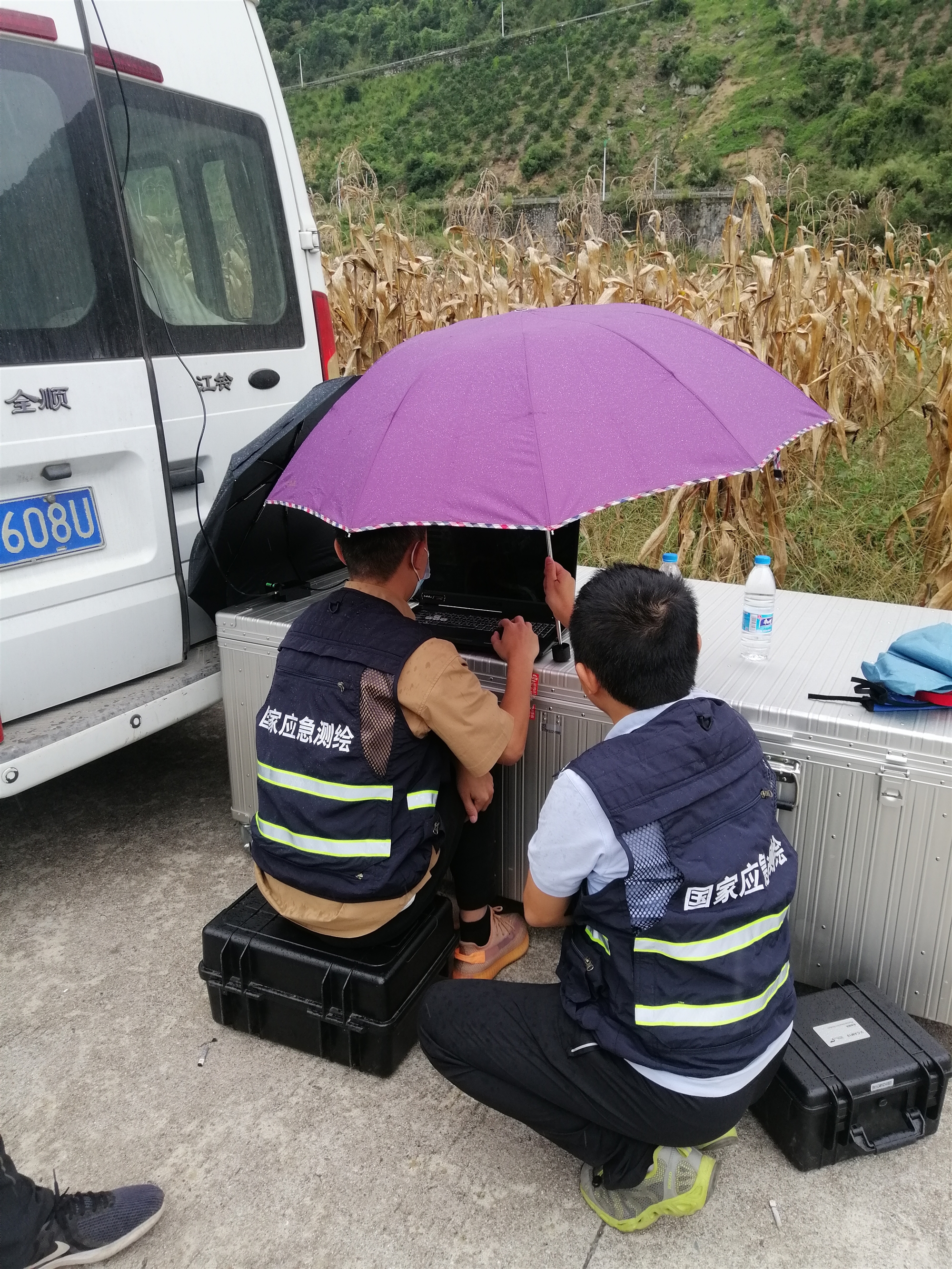 7日夜間,無人機組又受命冒雨連夜奔赴受災嚴重的石棉縣。此時離黃金救援72小時已越來越近,石棉地區(qū)還沒有一張災后影像圖供搶險救災部門使用,救災情形刻不容緩。8日一早,機組冒著滑坡落石危險開展場地踏勘、無人機組裝等準備工作。此次地震發(fā)生區(qū)域為高山峽谷,多云多霧多雨,現(xiàn)場時間窗口“短”、天氣窗口“少”、空域窗口“緊”,影像獲取難度極大。機組頂住壓力,在現(xiàn)場蹲守了整整一個下午,終于抓住短暫飛行“窗口”,果斷出擊,冒雨飛行,終于一戰(zhàn)定乾坤。下午19時成功獲取王崗坪鄉(xiāng)至新民鄉(xiāng)沿線及龍頭石大壩約40平方公里高清無人機影像。這是震后首批也是唯一的石棉縣災區(qū)航空影像,為搶險救災、次生災害排查、決策部署等提供了珍貴的第一手資料。