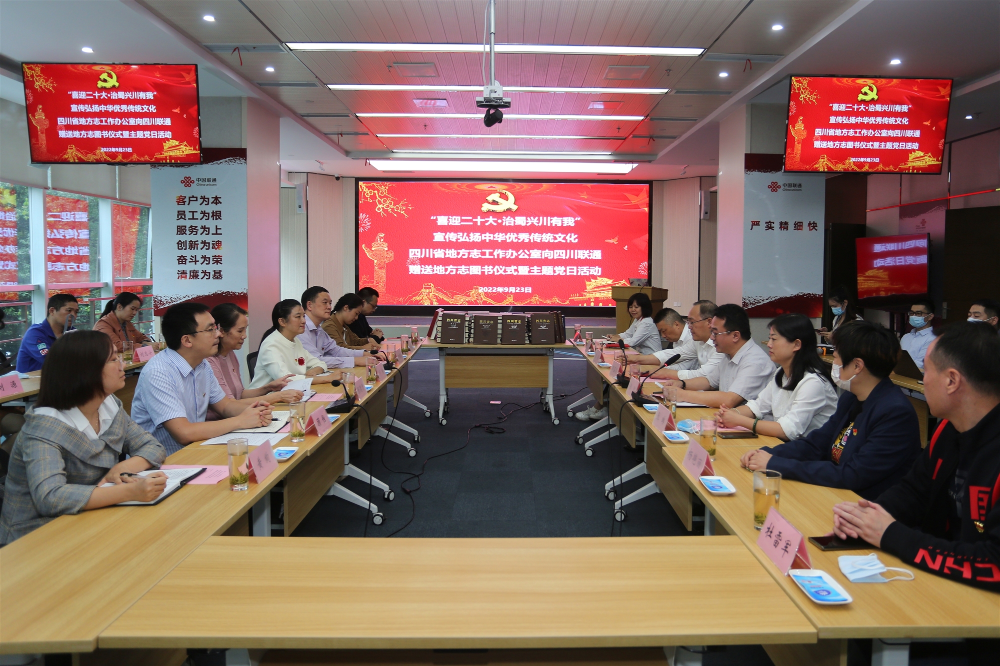 為深入學(xué)習(xí)貫徹習(xí)近平總書記來川視察重要指示精神,貫徹落實(shí)中央和省委部署要求,做深做實(shí)喜迎黨的二十大黨員教育活動(dòng),2022年9月23日下午,四川省地方志工作辦公室走進(jìn)中國聯(lián)通四川省分公司,開展“喜迎二十大·治蜀興川有我”宣傳弘揚(yáng)中華優(yōu)秀傳統(tǒng)文化主題黨日共建活動(dòng)。