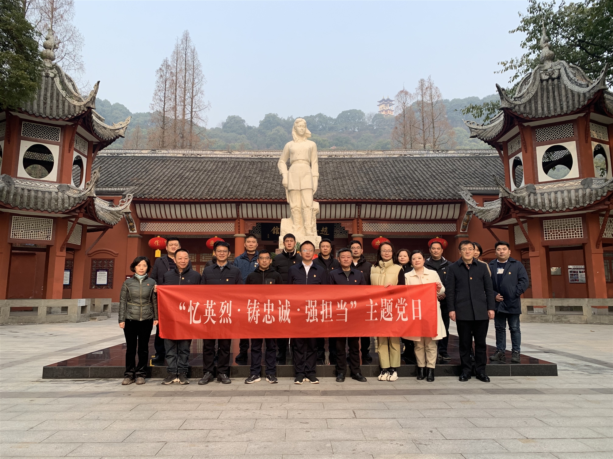 在趙一曼紀念館前廣場,全體黨員瞻仰烈士雕像行鞠躬禮,向英雄敬獻花籃,表達對革命先烈的深切緬懷。面向鮮紅的黨旗,唐功江帶領全體黨員高舉右拳,重溫入黨誓詞。隨后,大家懷著敬仰的心情參觀了趙一曼紀念館,通過一件件珍貴的歷史文物,一幅幅革命斗爭的生動畫面,深入了解了趙一曼同志崇高的革命精神、堅定的理想信念和英勇戰(zhàn)斗的一生。趙一曼原名李坤泰,又名李一超。1926年3月,趙一曼加入中國共產(chǎn)黨,她積極參加黨領導的“抵制仇貨”的愛國運動,成為當?shù)貙W生運動的領導者之一。1927年9月,進入莫斯科中山大學學習。1931年九一八事變爆發(fā)后,被黨組織派往東北地區(qū)領導革命斗爭。1935年11月,在一場抗擊日寇的激烈戰(zhàn)役中,為了掩護部隊突圍受傷被俘。身負重傷的趙一曼面對敵人滅絕人性的摧殘,寧死不屈,始終對黨組織的機密守口如瓶。1936年8月,英勇就義。“未惜頭顱新故國,甘將熱血沃中華。”趙一曼用年僅31歲的年輕生命實現(xiàn)了不屈不撓、保家衛(wèi)國的錚錚誓言。2009年9月,趙一曼被評為“100位為新中國成立作出突出貢獻的英雄模范人物”之一。趙一曼的英雄事跡,讓全體黨員深受震撼,激勵大家銘記歷史、珍惜當下、不忘初心、砥礪前行。