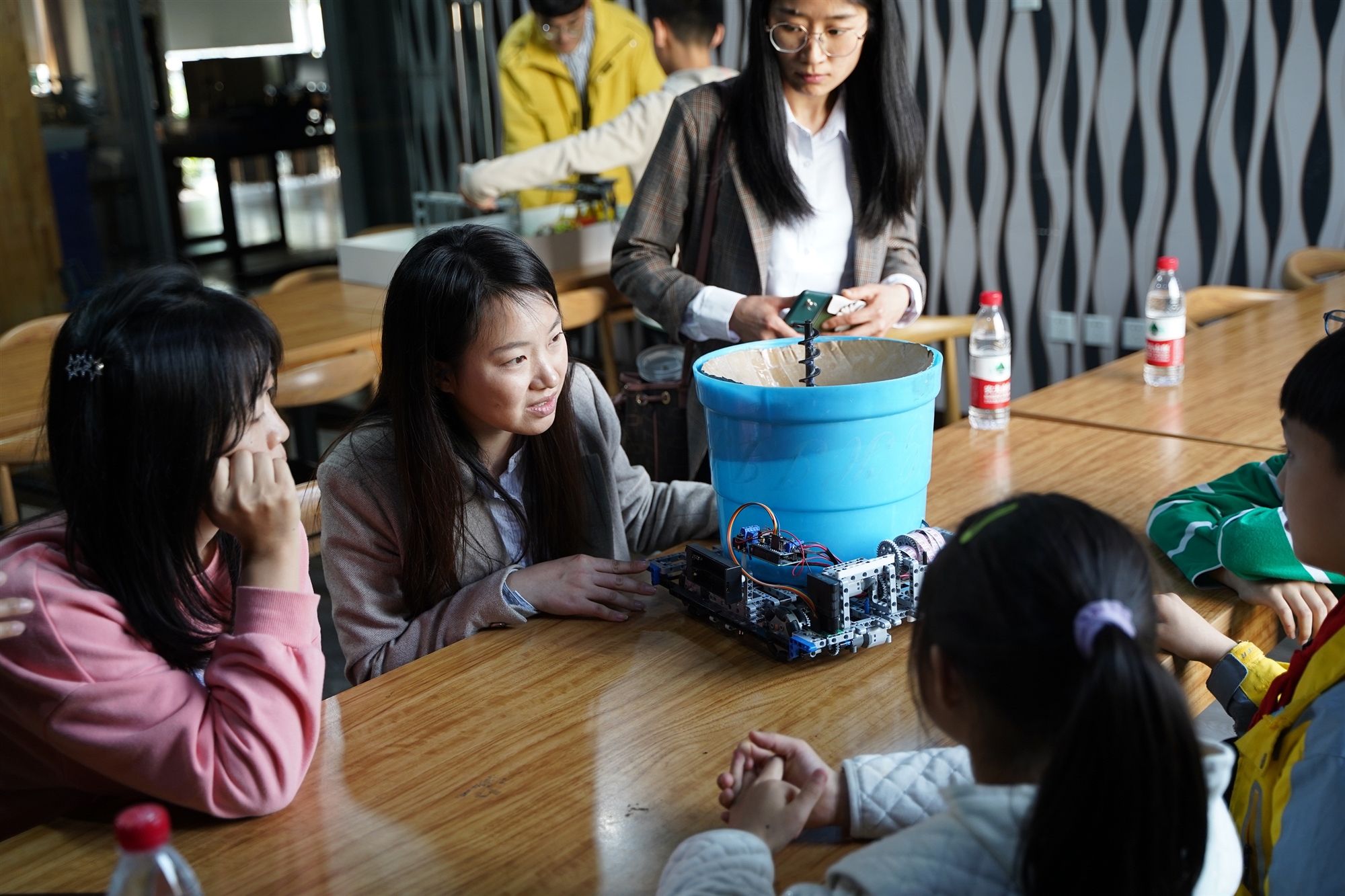 一次共創(chuàng)活動,護航“創(chuàng)新種子”茁壯成長。青年導師與學生們圍繞生活中遇到的實際困難,共同設計完成科創(chuàng)作品。導師們發(fā)揮專業(yè)優(yōu)勢,耐心細致地引導學生優(yōu)化創(chuàng)作理念、調整設計方向、解決實際問題,并針對作品中的發(fā)明點進行剖析講解,切實幫助學生們體會創(chuàng)造樂趣、激發(fā)創(chuàng)新活力。在“師徒”的共同努力下,“智能共享車位鎖”“全自動畫線車”“智能送藥車”“智能防墜窗戶”等一個個閃耀著青春智慧的創(chuàng)新作品已初具雛形。