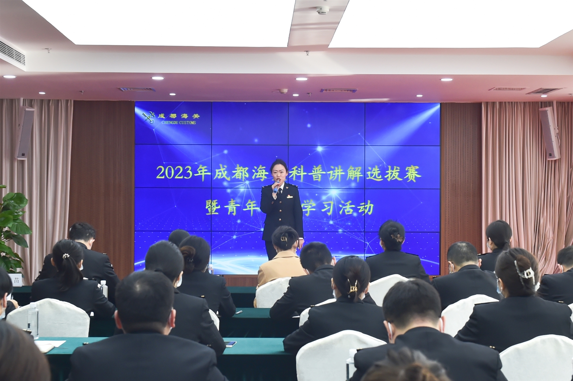 近日,成都海關(guān)舉辦科普講解選拔賽暨青年理論學習活動。該關(guān)科技處、辦公室、自貿(mào)處、團委負責人和機關(guān)青年理論學習小組22名成員參加?;顒犹匮袊娨曀囆g(shù)家協(xié)會主持人專業(yè)委員會執(zhí)委、四川省十佳廣播電視節(jié)目主持人、四川省青聯(lián)委員陳菁菁擔任嘉賓,并指導參賽選手。