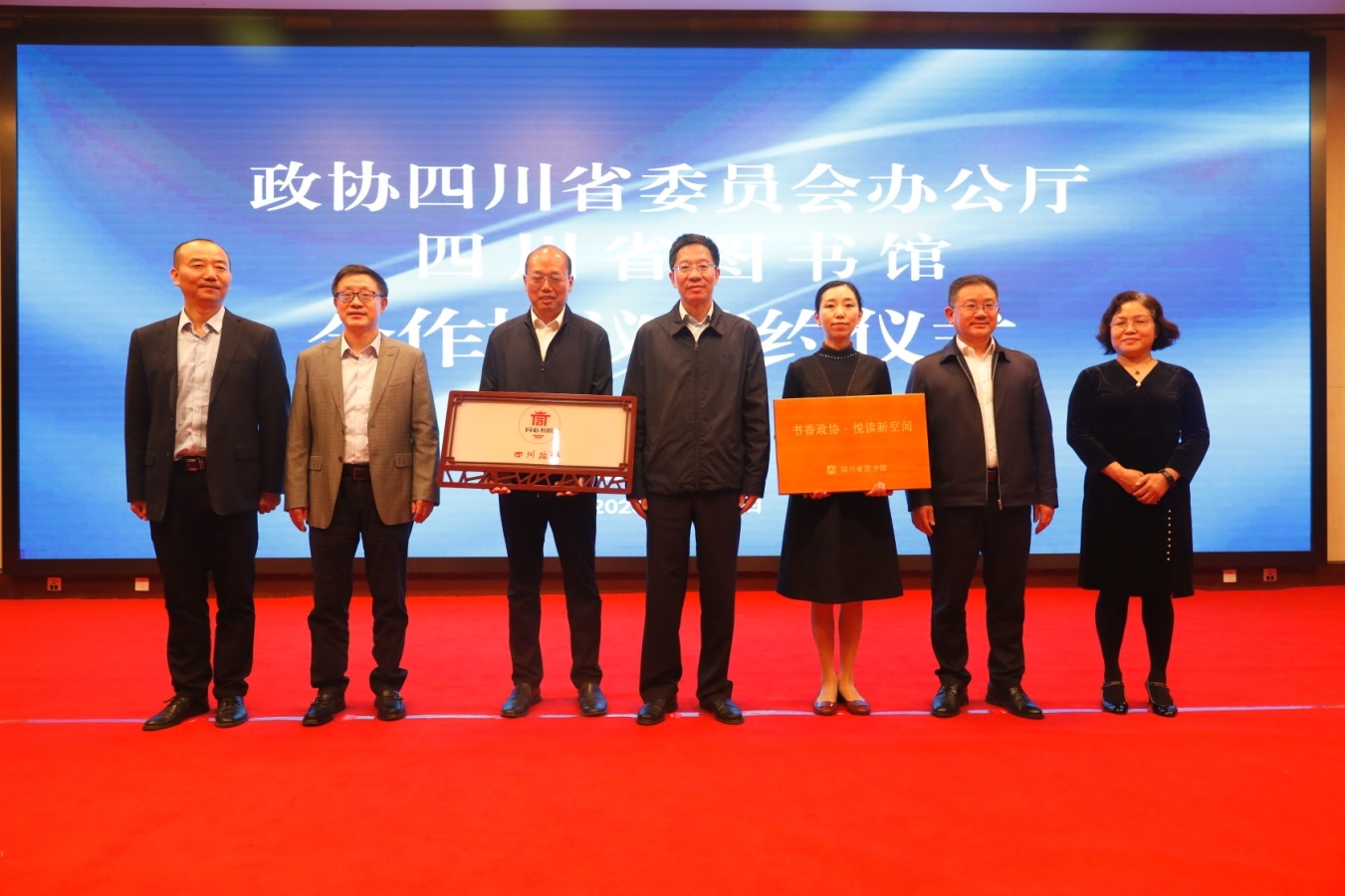 為深入學(xué)習(xí)貫徹習(xí)近平新時(shí)代中國特色社會主義思想,落實(shí)習(xí)近平總書記關(guān)于推動(dòng)全民閱讀、建設(shè)書香社會的重要指示精神,4月25日,省政協(xié)辦公廳和省圖書館跨界聯(lián)合,簽署合作協(xié)議,并互相授牌“四川政協(xié)同心書院”“書香政協(xié)·悅讀新空間”。
