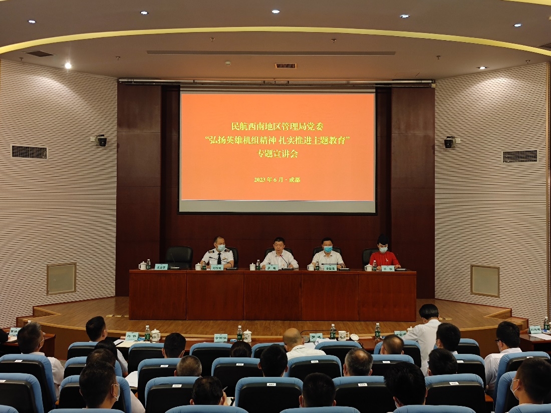 6月14日,民航西南局局組織開(kāi)展“弘揚(yáng)英雄機(jī)組精神 扎實(shí)推進(jìn)主題教育”專(zhuān)題宣講會(huì),邀請(qǐng) “中國(guó)民航英雄機(jī)組”——劉傳健機(jī)長(zhǎng)和畢楠乘務(wù)長(zhǎng)到會(huì)宣講英雄事跡。會(huì)議以視頻形式在全局范圍召開(kāi),黨委書(shū)記羅曉主持會(huì)議,西南局機(jī)關(guān)、西藏區(qū)局、各監(jiān)管局、機(jī)關(guān)服務(wù)中心、醫(yī)學(xué)中心共300余名黨員干部分別在主會(huì)場(chǎng)和分會(huì)場(chǎng)參加了宣講會(huì)。民航局第二巡回指導(dǎo)組成員曹瑋琦到會(huì)指導(dǎo)。