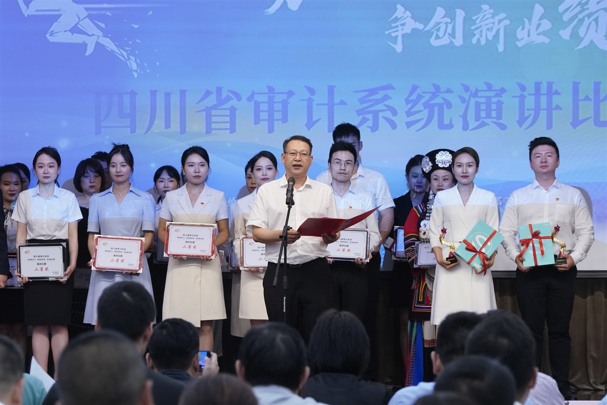 審計(jì)廳黨組書記、廳長(zhǎng)朱大興在總結(jié)時(shí)指出,選手們的演講是四川審計(jì)人不忘初心、牢記使命的激情感言,是自強(qiáng)不息、擔(dān)當(dāng)作為的生動(dòng)展示,更是接續(xù)奮斗、勇毅前行的行動(dòng)號(hào)角。他強(qiáng)調(diào),全省審計(jì)機(jī)關(guān)要始終堅(jiān)定擁護(hù)“兩個(gè)確立”、做到“兩個(gè)維護(hù)”,加快構(gòu)建集中統(tǒng)一、全面覆蓋、權(quán)威高效的審計(jì)監(jiān)督體系,落實(shí)“如臂使指”“如影隨形”“如雷貫耳”重要要求,更好發(fā)揮審計(jì)監(jiān)督作用;要始終堅(jiān)信契合中國(guó)國(guó)情的審計(jì)新路子,深化對(duì)中國(guó)特色社會(huì)主義審計(jì)事業(yè)的規(guī)律性認(rèn)識(shí),著力解決以老辦法運(yùn)行新體制的問(wèn)題,不斷鞏固拓展新時(shí)代治國(guó)理政在審計(jì)領(lǐng)域取得的重要制度成果;要始終堅(jiān)決貫徹落實(shí)黨中央重大決策部署和省委、省政府工作要求,立足經(jīng)濟(jì)監(jiān)督職能定位,聚焦主責(zé)主業(yè),敢審敢嚴(yán)、敢說(shuō)敢言,持續(xù)提升服務(wù)黨和國(guó)家事業(yè)發(fā)展大局的工作質(zhì)效;要始終堅(jiān)持傳承審計(jì)光榮傳統(tǒng)和優(yōu)良作風(fēng),塑造職業(yè)精神,提升專業(yè)能力,更加有力有效打造忠誠(chéng)干凈擔(dān)當(dāng)?shù)母咚刭|(zhì)專業(yè)化審計(jì)干部隊(duì)伍。