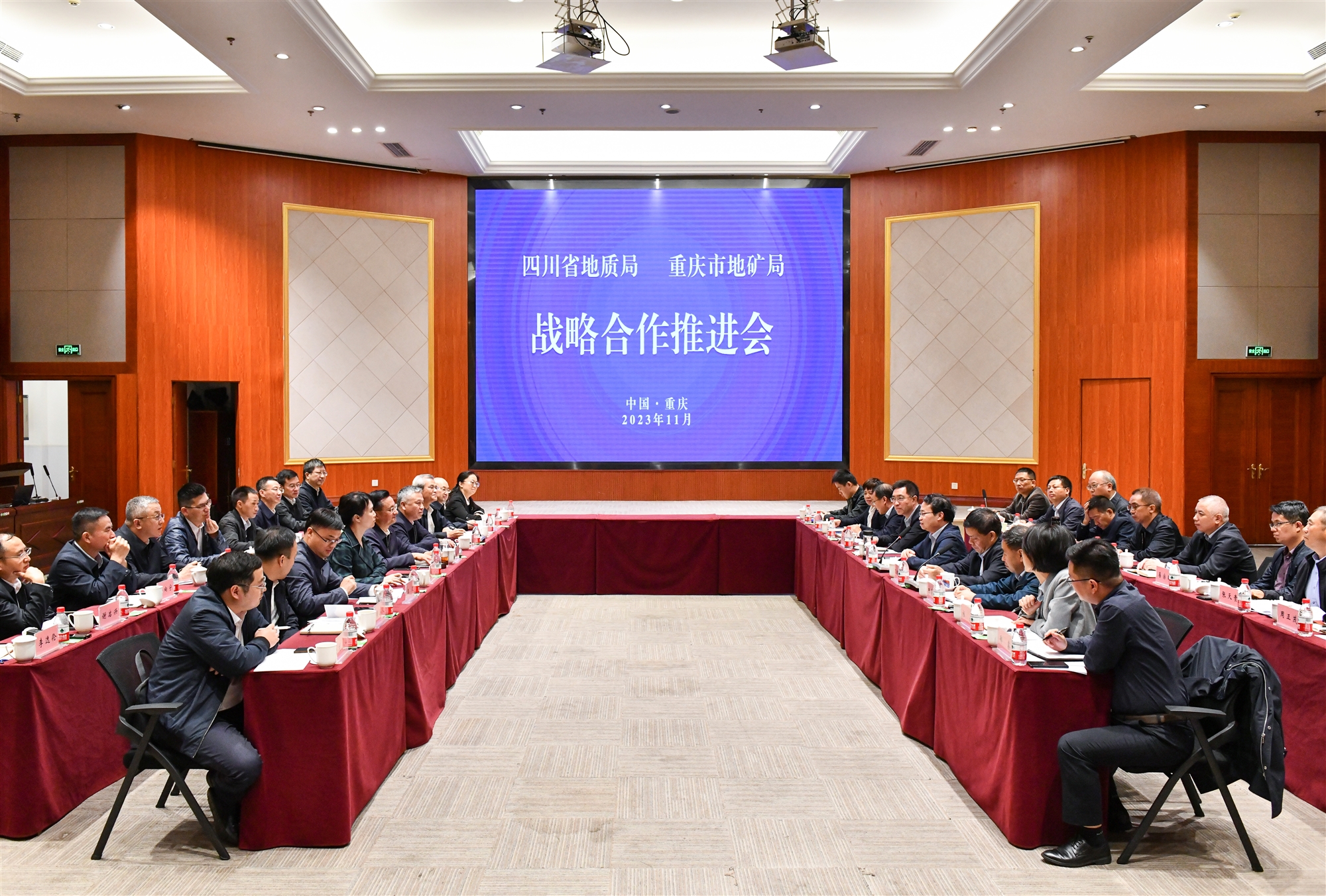 近日,四川省地質(zhì)局與重慶市地礦局戰(zhàn)略合作推進會在重慶順利召開,以實際行動貫徹落實重慶四川黨政聯(lián)席會議第七次會議精神,以地質(zhì)力量共同助力成渝地區(qū)雙城經(jīng)濟圈建設(shè)。四川省地質(zhì)局黨委書記、局長伍定,黨委委員、副局長謝兵、單鑫,黨委委員、總工程師李慶陽;重慶市地礦局黨委書記、局長周波,黨委委員、副局長萬朝榮、羅迎五,二級巡視員、市地質(zhì)工會主席王青海出席會議。
