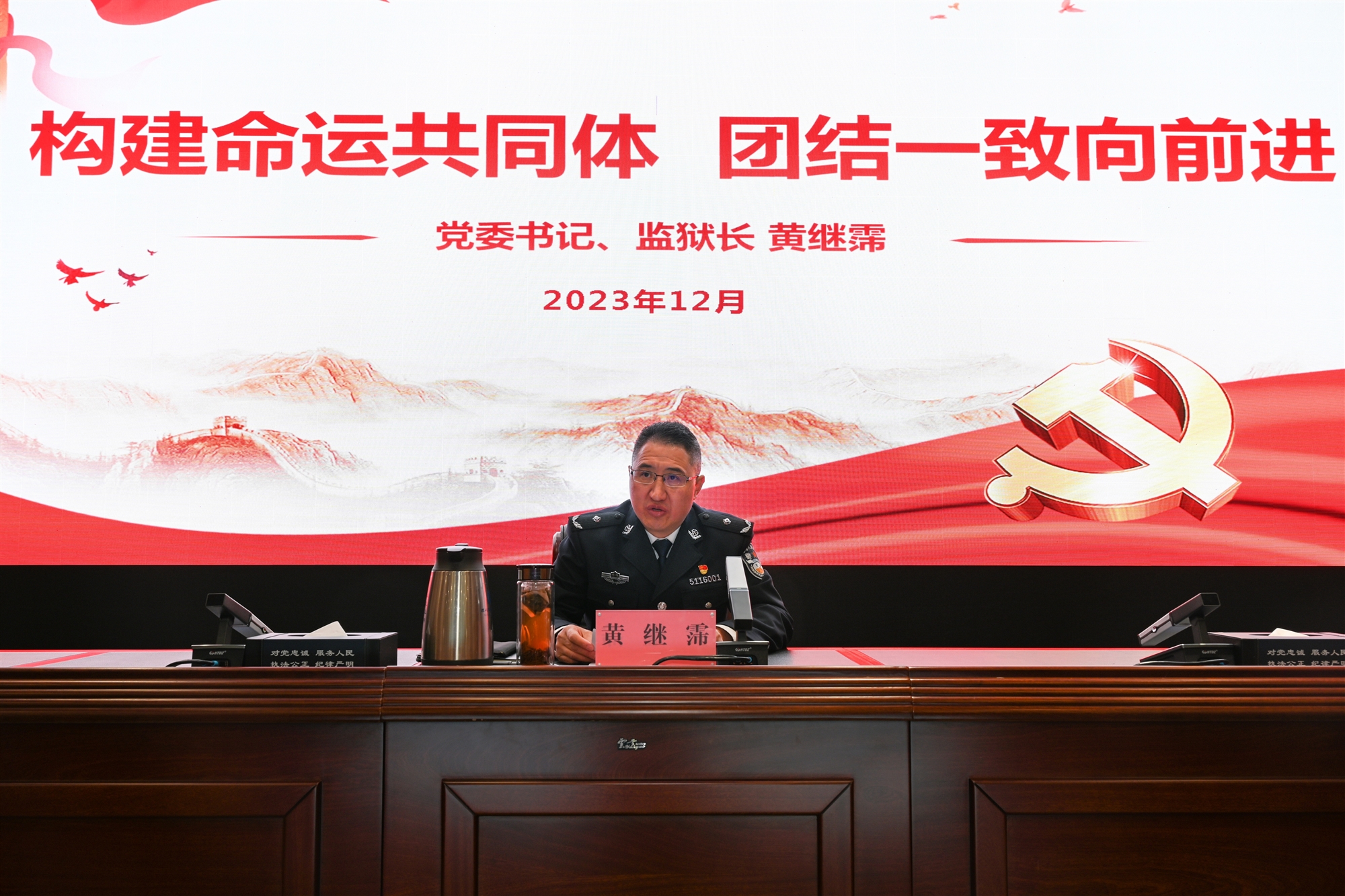 近日,四川省眉州監(jiān)獄黨委書記、監(jiān)獄長黃繼霈以“構(gòu)建命運(yùn)共同體 團(tuán)結(jié)一致向前進(jìn)”為題,為全體民警職工講授了一堂生動活潑、寓意深長的專題黨課。