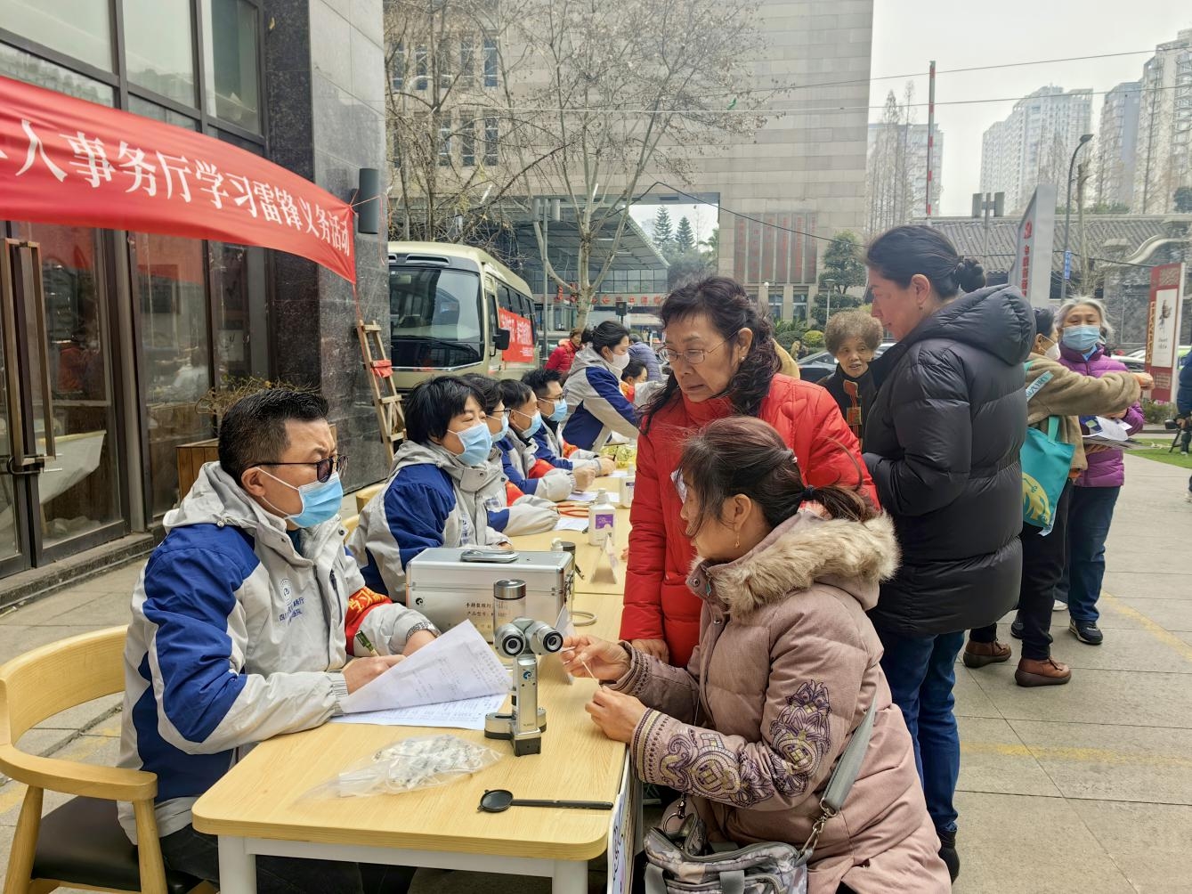 在綜合義診點位,四川省第一退役軍人醫(yī)院醫(yī)護人員逐一為居民測血壓、查血糖、做心電圖及彩超,并為他們講解高血壓、糖尿病等常見病、慢性病的治療與預防。