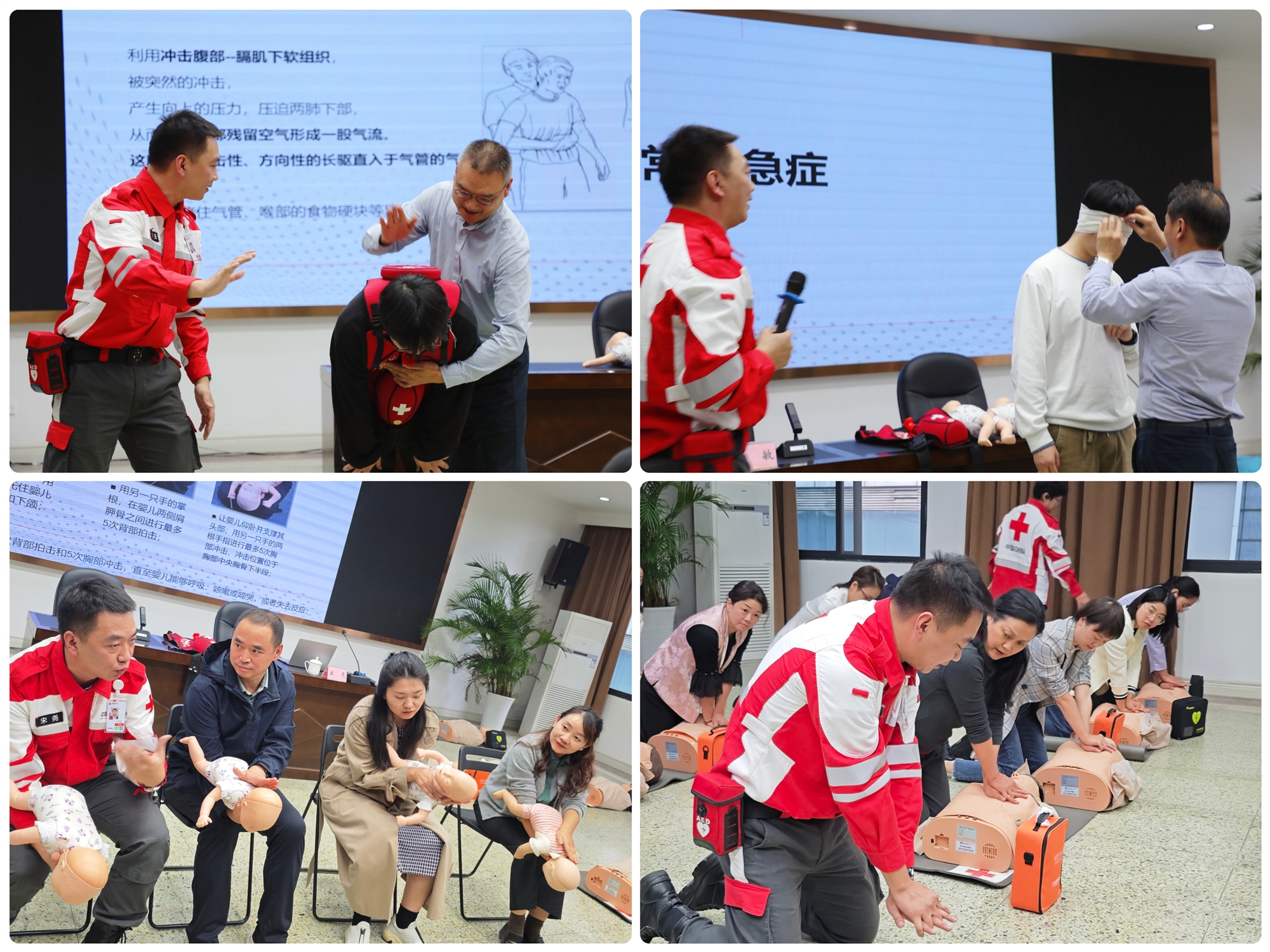 本次培訓(xùn)特邀四川紅十字應(yīng)急救援救護(hù)中心理事長、主任,中國紅十字會(huì)應(yīng)急救護(hù)師資宋堯同志授課,宋堯用生動(dòng)鮮活的實(shí)例與通俗易懂的語言,向干部職工詳細(xì)講解了如何應(yīng)對和處理日常突發(fā)情況。結(jié)合模擬人、按壓儀等教具,講解海姆立克急救法、心肺復(fù)蘇(CPR+AED)基本原理與操作技巧,詳細(xì)實(shí)操演示講解,逐一分解施救步驟,突出急救重點(diǎn)易錯(cuò)點(diǎn)。干部職工熱情高漲,踴躍參與實(shí)操練習(xí),在老師專業(yè)指導(dǎo)下,逐步掌握了正確的急救方法和技巧。