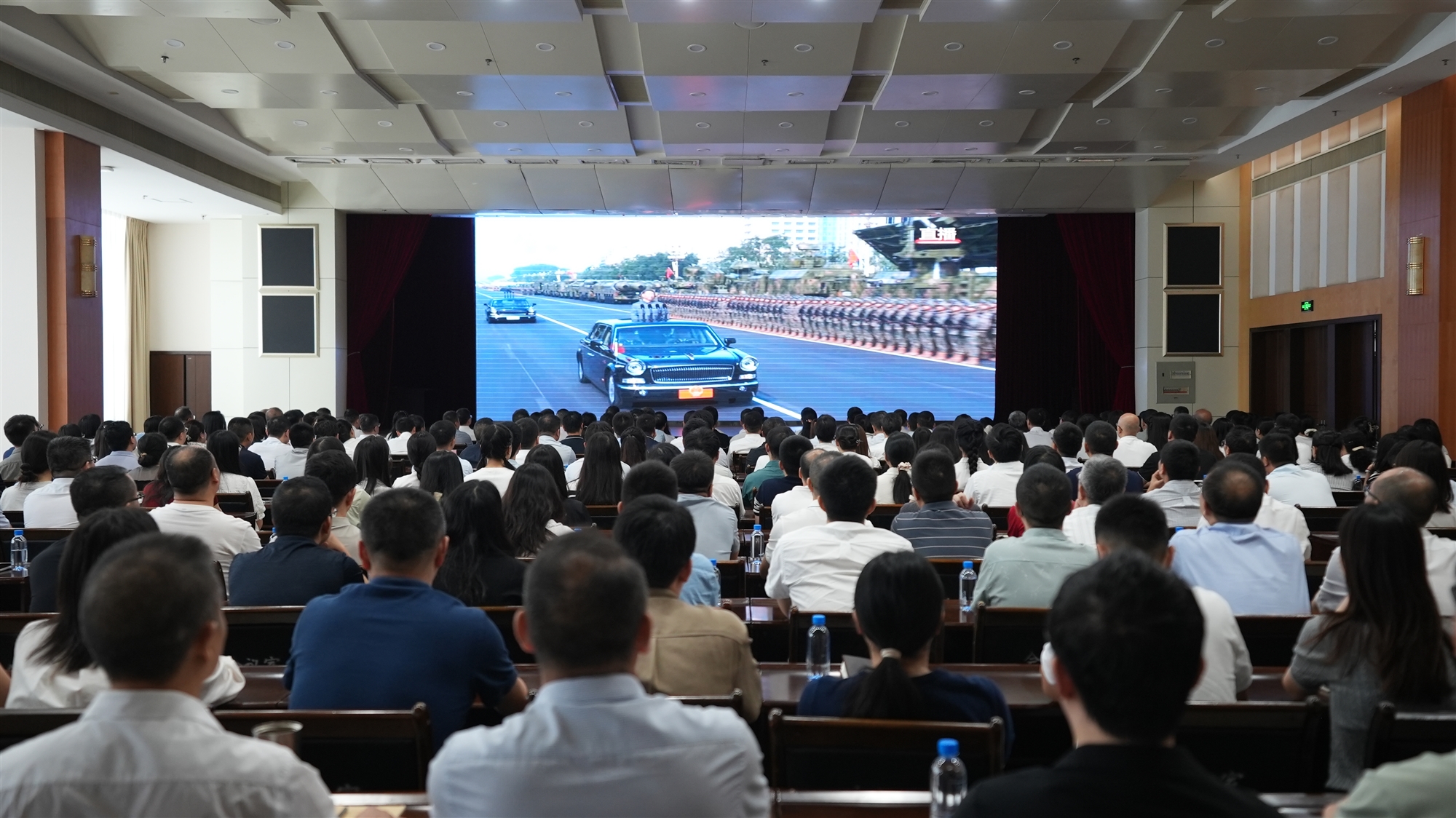 觀看現(xiàn)場(chǎng)氛圍莊重?zé)崃?,全體人員全程專注投入。當(dāng)國(guó)歌奏響的那一刻,大家自覺(jué)起身肅立,齊聲高唱,表達(dá)了對(duì)祖國(guó)的無(wú)限熱愛(ài)與崇高敬意。在閱兵式環(huán)節(jié),空中護(hù)旗梯隊(duì)、徒步方隊(duì)、戰(zhàn)旗方隊(duì)、裝備方隊(duì)、空中梯隊(duì)等方(梯)隊(duì)依次通過(guò)天安門廣場(chǎng),戰(zhàn)旗獵獵、鐵流滾滾,大家不時(shí)發(fā)出陣陣掌聲和歡呼聲,深切感受了新時(shí)代人民軍隊(duì)政治建軍新風(fēng)貌、力量結(jié)構(gòu)新布局、現(xiàn)代化建設(shè)新進(jìn)展、備戰(zhàn)打仗新成效。