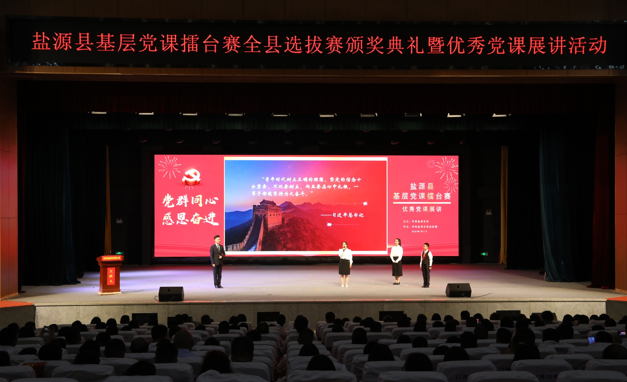 火紅七月映初心,拼搏奮進(jìn)灼芳華。7月27日,涼山州鹽源縣“黨群同心·感恩奮進(jìn)”基層黨課擂臺(tái)賽縣級(jí)選拔賽圓滿結(jié)束,并在縣民族中學(xué)多功能廳舉行頒獎(jiǎng)典禮和優(yōu)秀黨課展講活動(dòng)。