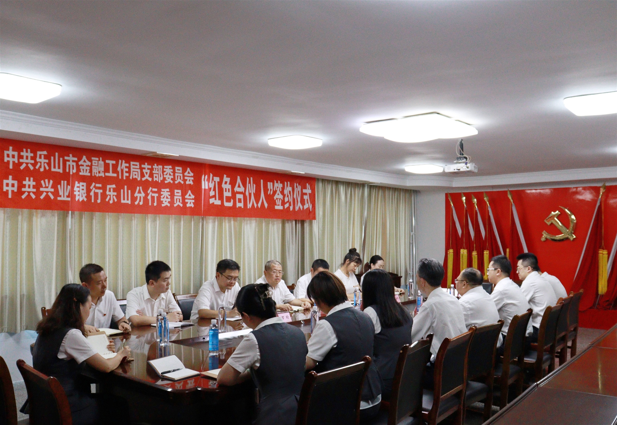 為傳承紅色基因,進一步貫徹落實黨對金融工作集中統(tǒng)一領(lǐng)導(dǎo),以黨建引領(lǐng)全市金融業(yè)高質(zhì)量發(fā)展,8月10日下午,樂山市金融工作局黨支部與興業(yè)銀行樂山分行黨委聯(lián)合舉行“紅色合伙人”黨建共建簽約儀式,樂山市金融工作局黨組書記、局長許拉弟,興業(yè)銀行樂山分行黨委書記、行長劉杰及雙方黨員代表參加簽約儀式,樂山市金融工作局黨組成員、副局長余強主持儀式。