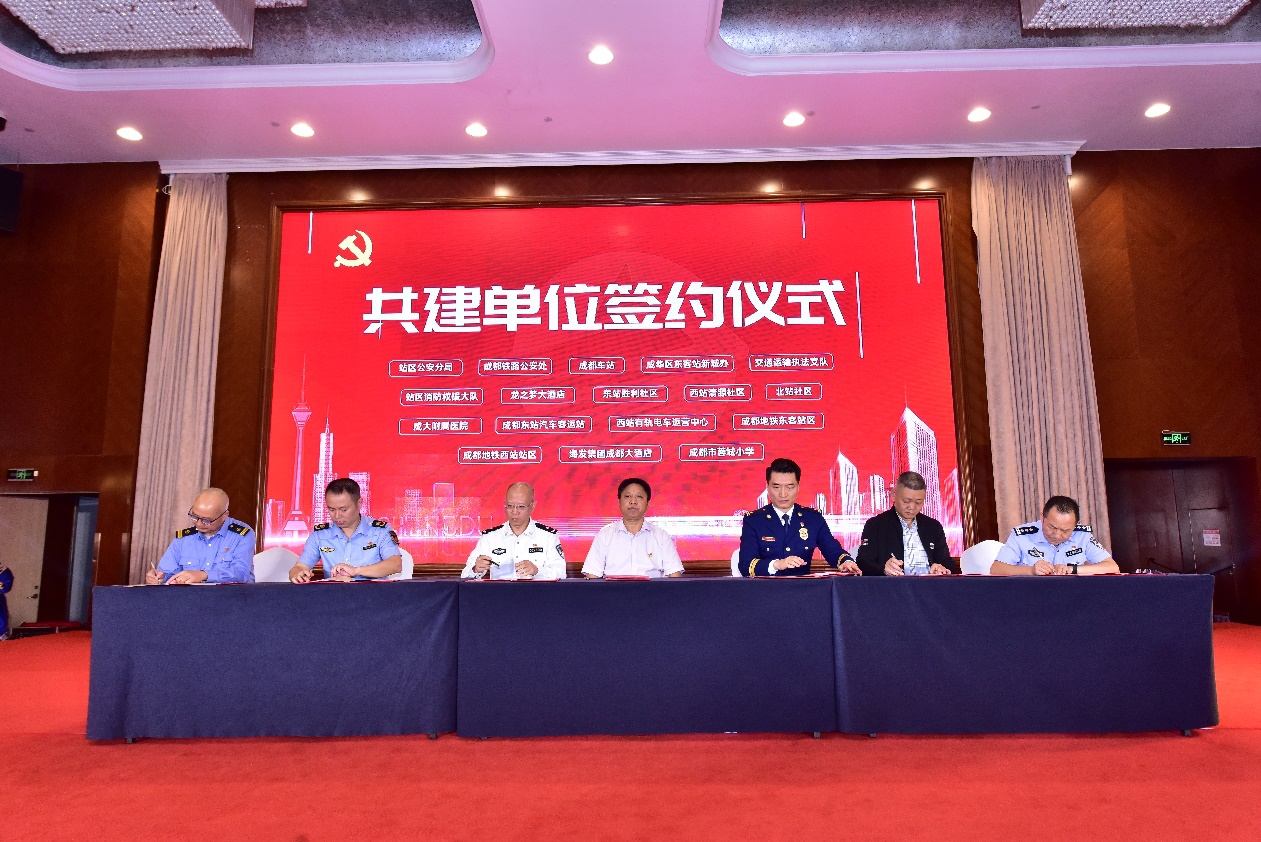 隨后,站區(qū)公安分局政委黃寶文、成都東站汽車客運站支部書記吳懷鈺上臺,交流了作為聯(lián)建成員單位的自有資源及加入“蓉城先鋒·驛路同行”品牌的一系列訴求。儀式最后,市政府火車站管委機關黨委書記徐崇榮與站區(qū)公安分局、成都鐵路公安處、成都車站、成華區(qū)東客站新城辦、交通運輸執(zhí)法支隊、站區(qū)消防救援大隊6家代表一同簽署了“蓉城先鋒·驛路同行”首批成員單位共建協(xié)議,并授予了黨建聯(lián)建單位牌匾。