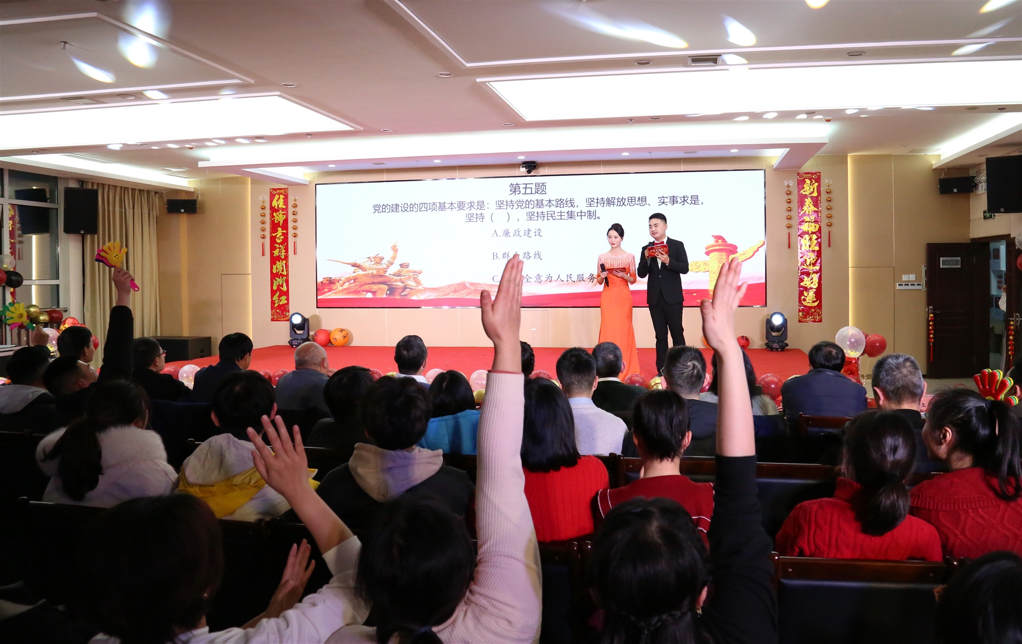 活動中,各支部黨員用自編自導的節(jié)目為甲辰龍年送上真誠祝福,在黨史學習知識競答環(huán)節(jié),現(xiàn)場人員積極參與,不僅檢驗了主題教育學習成效,更從黨的百年歷史中汲取智慧力量,廣大黨員表示要進一步將黨史學深悟透,用黨的實踐經(jīng)驗啟迪智慧、砥礪品格,用百折不撓的精神續(xù)寫自然資源事業(yè)璀璨華章。