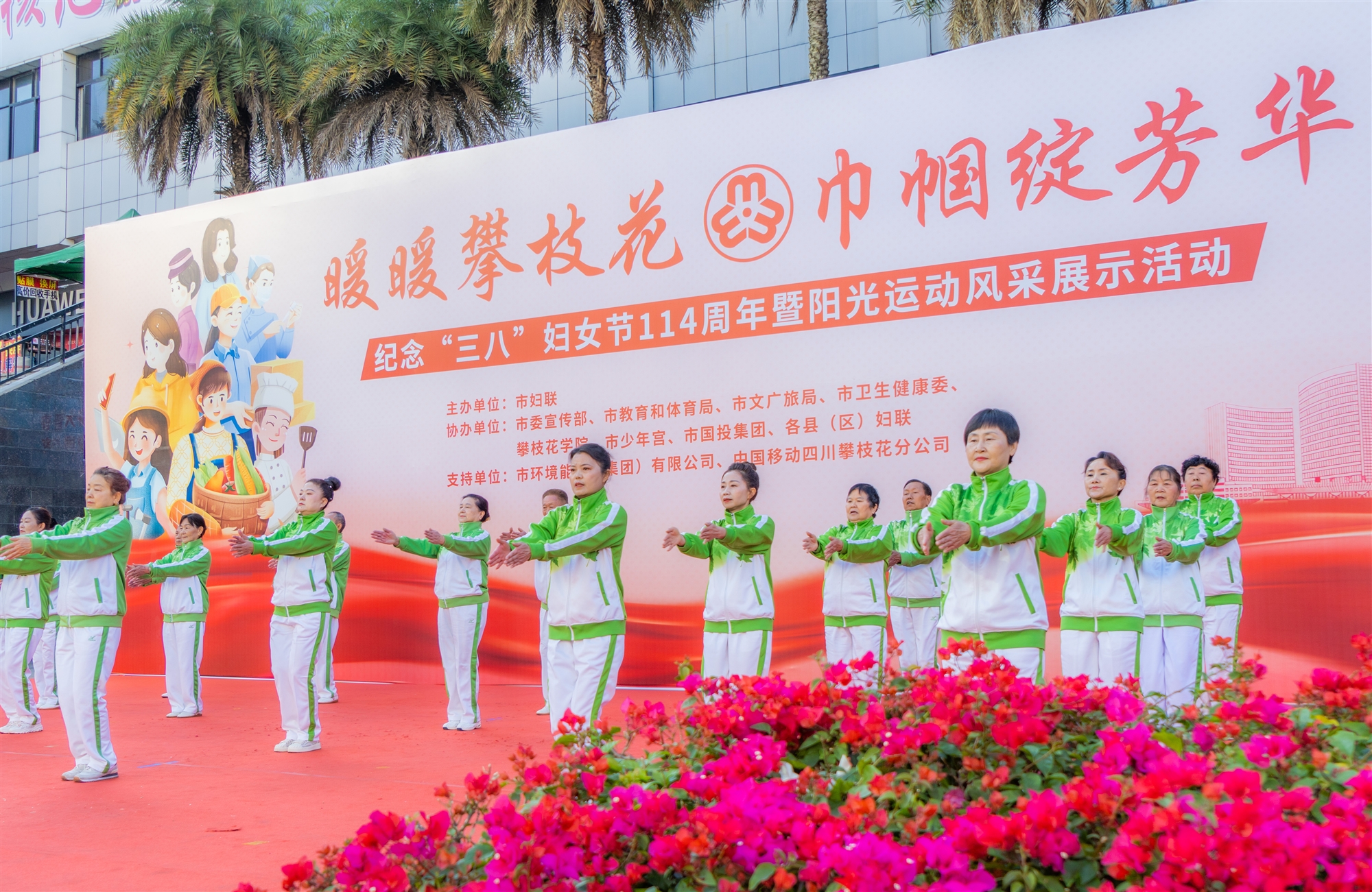 春暖三月,芳華競(jìng)現(xiàn)。3月3日,由攀枝花市婦聯(lián)主辦,攀枝花市委宣傳部、市教育和體育局、市文廣旅局、市衛(wèi)生健康委、攀枝花學(xué)院、市少年宮、市國(guó)投集團(tuán)、各縣(區(qū))婦聯(lián)協(xié)辦的攀枝花市“暖暖攀枝花 巾幗綻芳華”紀(jì)念“三八”婦女節(jié)114周年暨陽(yáng)光運(yùn)動(dòng)風(fēng)采展示活動(dòng)在攀枝花市中心廣場(chǎng)舉行。有關(guān)市級(jí)部門(mén)、單位領(lǐng)導(dǎo),市級(jí)各部門(mén)、單位、各大企業(yè)的女職工代表,女性社會(huì)組織的代表,先進(jìn)女性代表,來(lái)自全市的婦女代表和家庭代表以及全體演員約400人參加。