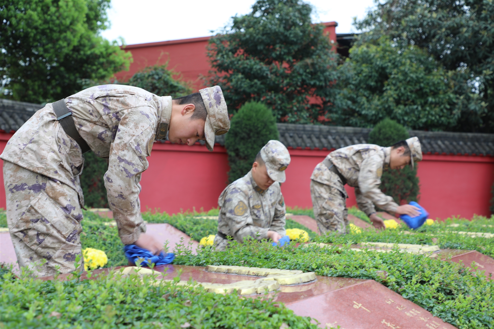 隨后,大家來到烈士墓區(qū),仔細(xì)擦拭烈士墓碑,并敬獻(xiàn)鮮花,表達(dá)對(duì)革命烈士的緬懷和哀思。
