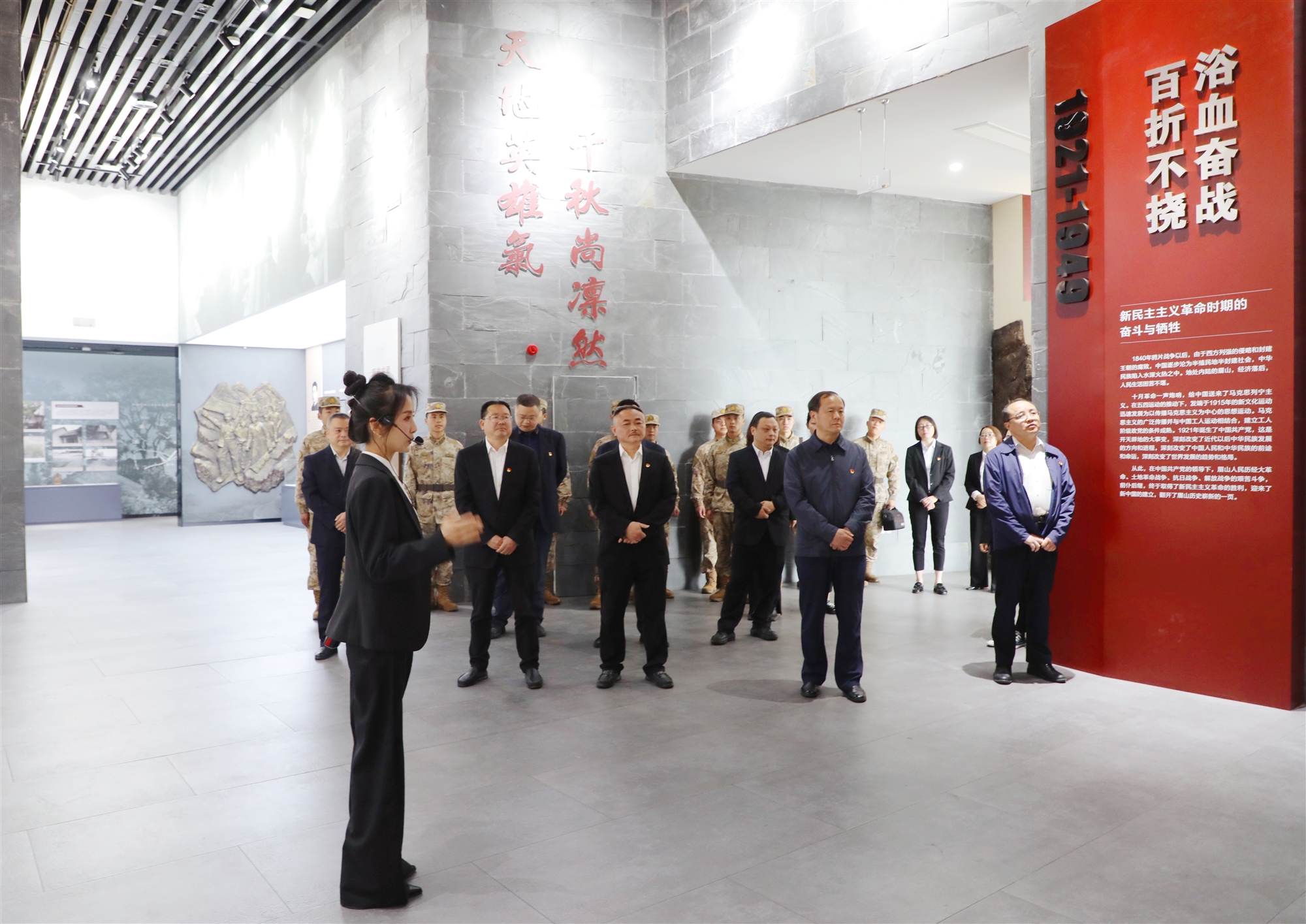英雄已逝、浩氣長(zhǎng)存。最后,大家來到眉山市烈士事跡陳列館,在講解員的解說下追憶眉山紅色歷史。