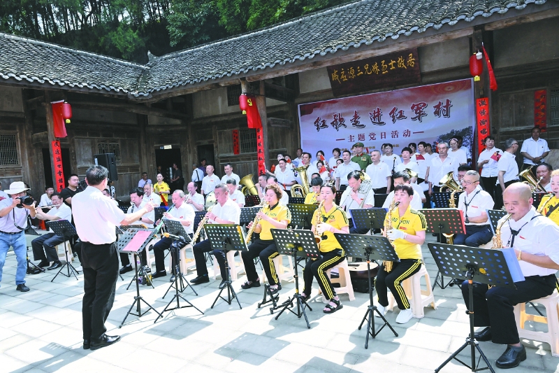 為慶祝中國共產(chǎn)黨成立103周年,近日,在南充市閬中市二龍鎮(zhèn)康埡口村戚家院子,一首《沒有共產(chǎn)黨就沒有新中國》大合唱拉開了“紅歌走進(jìn)紅軍村”主題黨日活動(dòng)的帷幕。此次活動(dòng)由南充市閬中市委組織部、市委老干部局、市科協(xié)、二龍鎮(zhèn)黨委主辦,市老科協(xié)、市川陜革命根據(jù)地歷史研究會(huì)和康埡口村承辦。