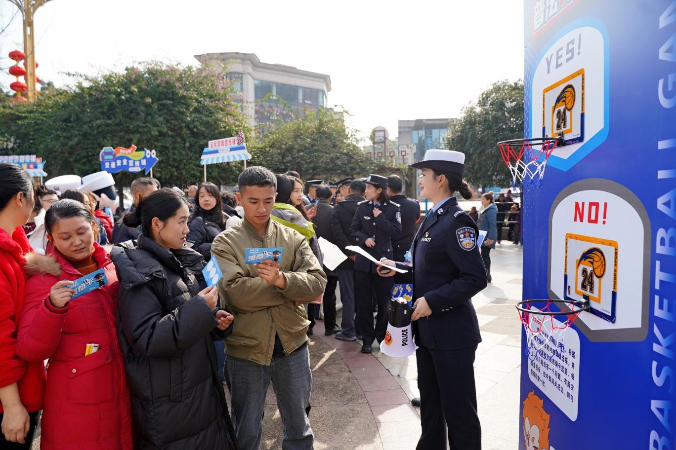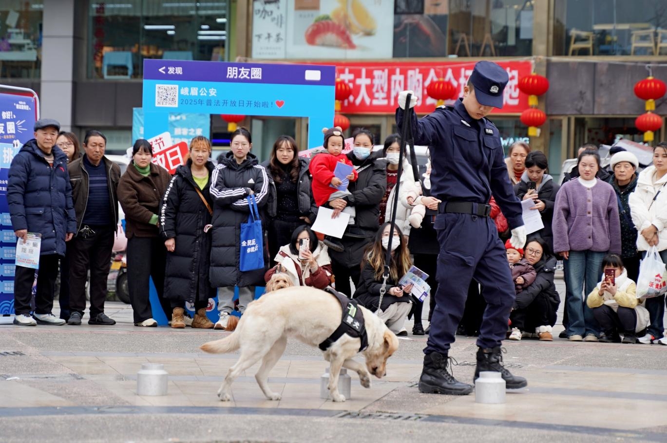 在第五個中國人民警察節(jié)來臨之際,峨眉公安機(jī)關(guān)開展“黨建引領(lǐng)-法治與我同行”宣傳展示活動?;顒蝇F(xiàn)場圍繞“國家安全”、“平安反詐”、“治安防范”等11個警務(wù)主題,通過反恐防暴裝備講解、無人機(jī)巡防展示、國家級“汪汪隊”訓(xùn)練等活動,向廣大市民展示人民警察風(fēng)采。同時還設(shè)置了“普法投籃”、“法治連連看”、“反詐擦亮眼”等一系列寓教于樂的游戲,吸引7千余名市民參與法治知識問答和互動,發(fā)放“警察小熊”、抱枕、筆記本等獎品1千余份、法治宣傳單1萬余份,讓法治意識深入民心。