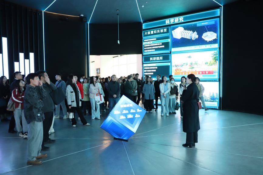 國(guó)家超級(jí)計(jì)算成都中心到底在算什么?如何支撐成都產(chǎn)業(yè)發(fā)展?在講解員的帶領(lǐng)下,大家?guī)е蓡栕哌M(jìn)中心展廳,了解了中心是如何發(fā)揮既能支持傳統(tǒng)科學(xué)計(jì)算、工程計(jì)算,又能支持新型智能計(jì)算的作用,在筑強(qiáng)算力底座、助力科技創(chuàng)新、產(chǎn)業(yè)發(fā)展和城市治理方面的強(qiáng)大支撐,以及如何借助算力在災(zāi)害預(yù)警、生物醫(yī)藥、助力成渝地區(qū)雙城經(jīng)濟(jì)圈建設(shè)等方面不斷取得突破。