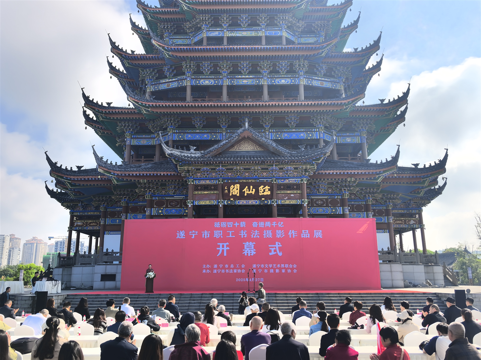 4月27日,“砥礪四十載、奮進(jìn)兩千億”遂寧市職工書法攝影作品展在臨仙閣開幕。此次展覽由市總工會(huì)、市文聯(lián)聯(lián)合主辦,以藝術(shù)視角展現(xiàn)遂寧建市40年來的發(fā)展成就,凝聚高質(zhì)量發(fā)展精神力量。市委常委、宣傳部部長,市總工會(huì)主席涂虹出席開幕式并宣布展覽啟幕,市文聯(lián)黨組書記、主席梁勤主持,市總工會(huì)黨組書記、副主席陳保兵致辭,200余名文藝界代表、職工代表及高校師生共同見證。