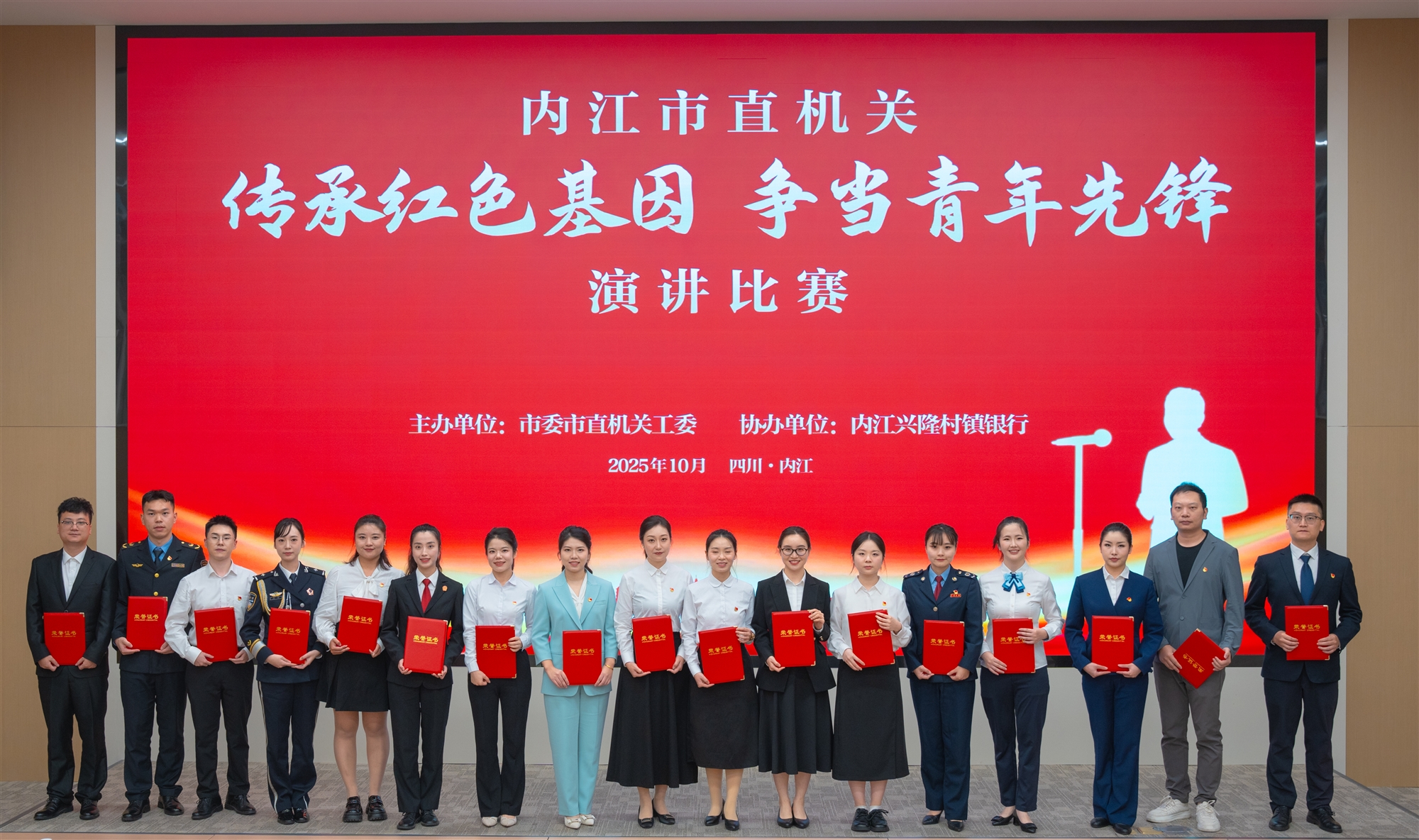為深化青年黨員理想信念教育,凝聚干事創(chuàng)業(yè)青春力量,10 月 21 日,由內江市委市直機關工委與內江興隆村鎮(zhèn)銀行聯(lián)合舉辦的 “傳承紅色基因 爭當青年先鋒” 演講比賽順利結束,為市直機關青年黨員搭建了展現擔當、抒發(fā)情懷的平臺。?