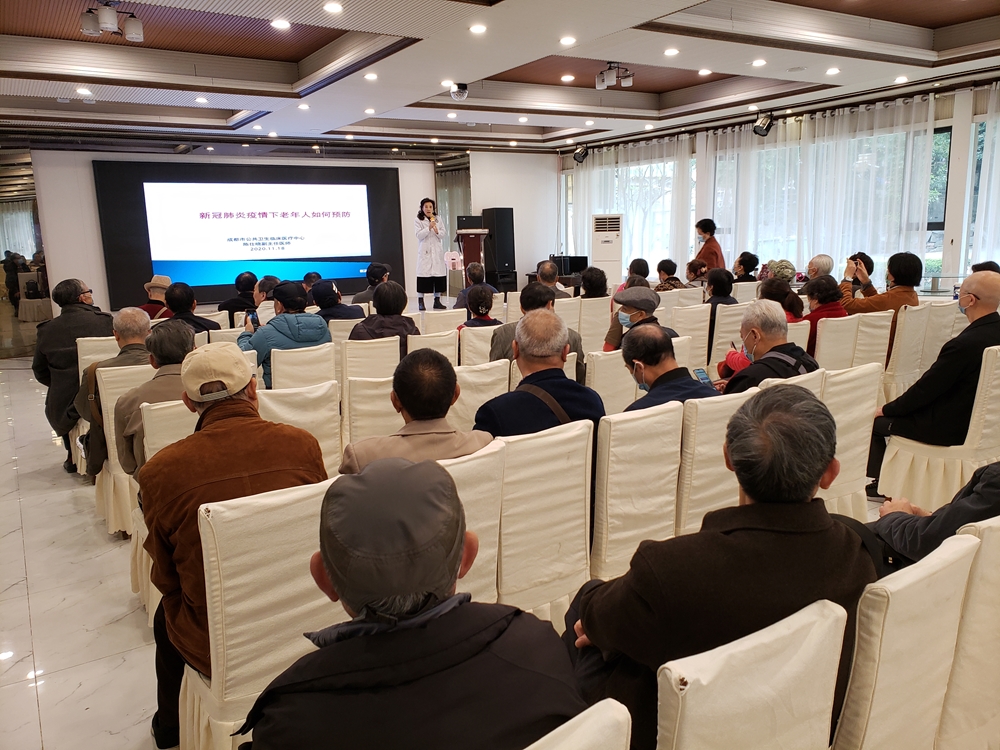 學(xué)習(xí)會(huì)后,黨支部邀請(qǐng)成都市公共衛(wèi)生臨床醫(yī)療中心副主任醫(yī)師陳仕曉就老年人如何做好新冠肺炎疫情預(yù)防進(jìn)行了專題講座。