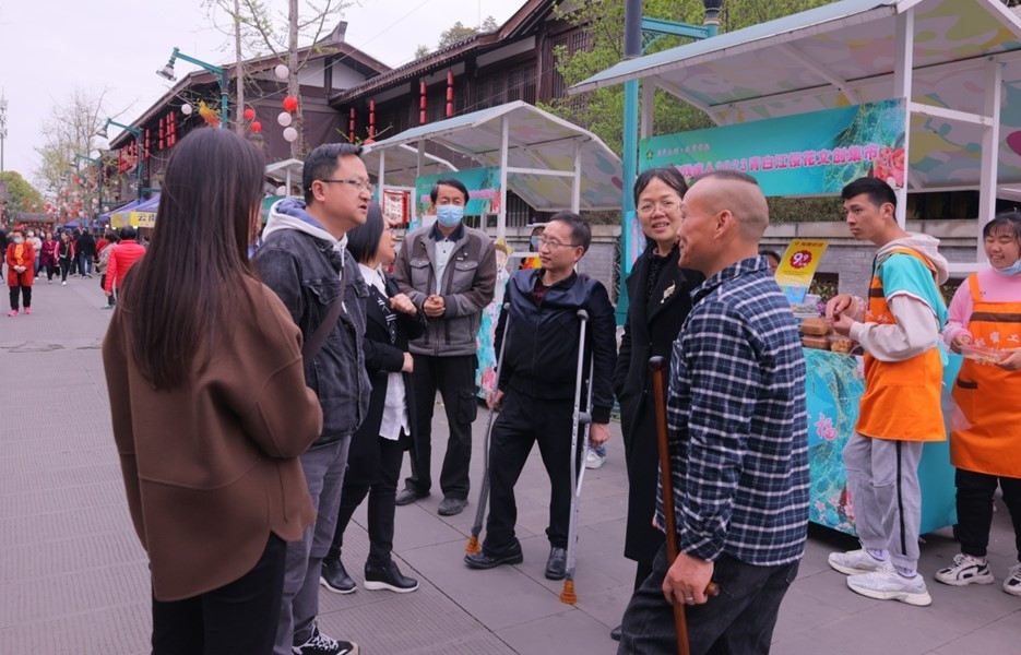 下午,黨員干部走進(jìn)“有愛無礙·逐夢(mèng)幸福”成都市殘疾人2023青白江櫻花文創(chuàng)集市,深入了解殘疾人文創(chuàng)產(chǎn)品的開發(fā)銷售以及適殘就業(yè)項(xiàng)目的多元?jiǎng)?chuàng)新,并圍繞如何提質(zhì)增效促進(jìn)殘疾人文創(chuàng)產(chǎn)業(yè)發(fā)展積極建言獻(xiàn)策。