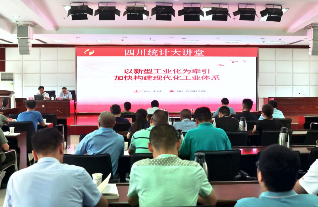 為深入學習宣傳貫徹省委十二屆三次全會精神,準確領(lǐng)會把握全會的精神實質(zhì),按照省委和省直機關(guān)工委有關(guān)部署要求,7月18日下午,省統(tǒng)計局舉辦了2023年第五期“四川統(tǒng)計大講堂”——學習宣傳貫徹省委十二屆三次全會精神專題講座。邀請省經(jīng)濟和信息化廳政策法規(guī)處處長李小平作《以新型工業(yè)化為牽引加快構(gòu)建現(xiàn)代化工業(yè)體系》宣講輔導。省統(tǒng)計局黨組成員、副局長、機關(guān)黨委書記楊治剛主持專題宣講,省統(tǒng)計局機關(guān)和直屬事業(yè)單位全體干部職工共90余人參加了此次專題宣講。